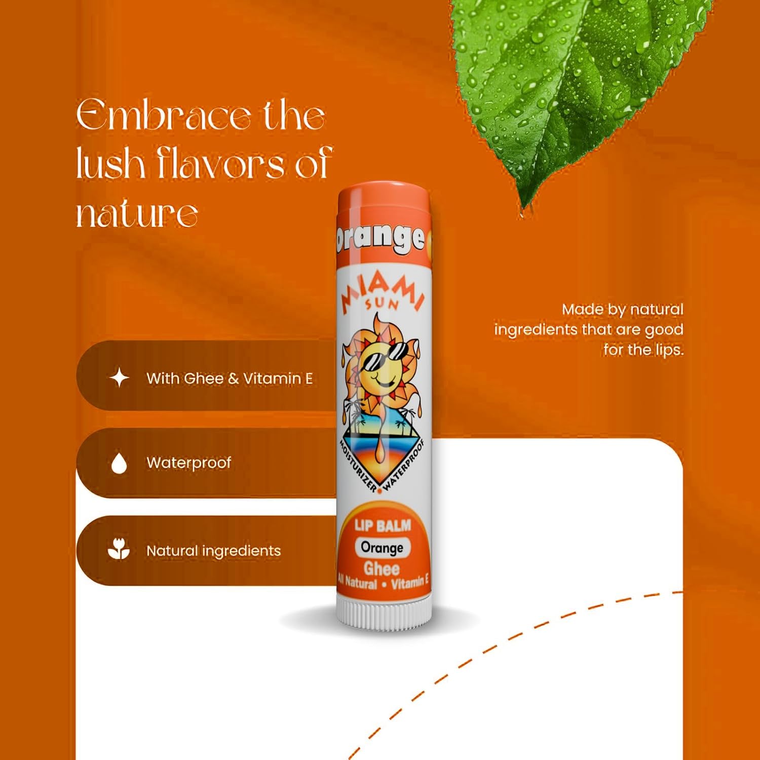 Miami Sun Natural Ghee Lip Balm, Hydrating Lip Treatment with Shea Butter & Beeswax, Organic & Non-Toxic, Best for Dry, Chapped Lips - Moisturizing, Healing, Chemical-Free Lip Care (12 Count, Orange)