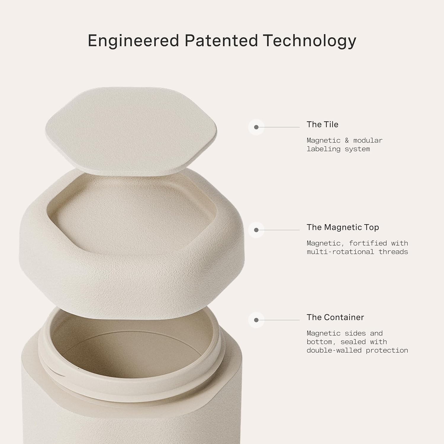 - PATENTED MAGNETIC DESIGN - Designed for seamless storage, our travel capsules feature a magnetic design that connects each container vertically or horizontally. They include magnetic labels that seamlessly swap between The Flex Small, The Flex Medium, and The Flex Large Capsules.