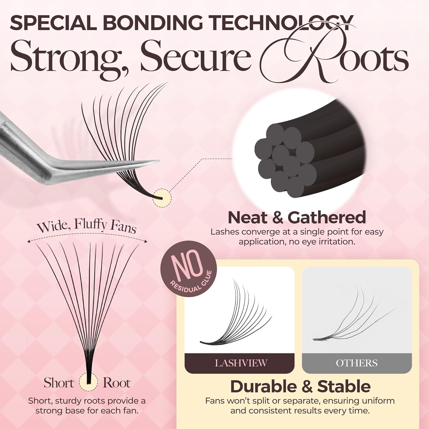 - Clean & Slim Base: Our premade fans eyelash extensions are designed with clean, thin bases free of excess glue, ensuring better coverage of natural lashes and creating a seamless, natural look after application