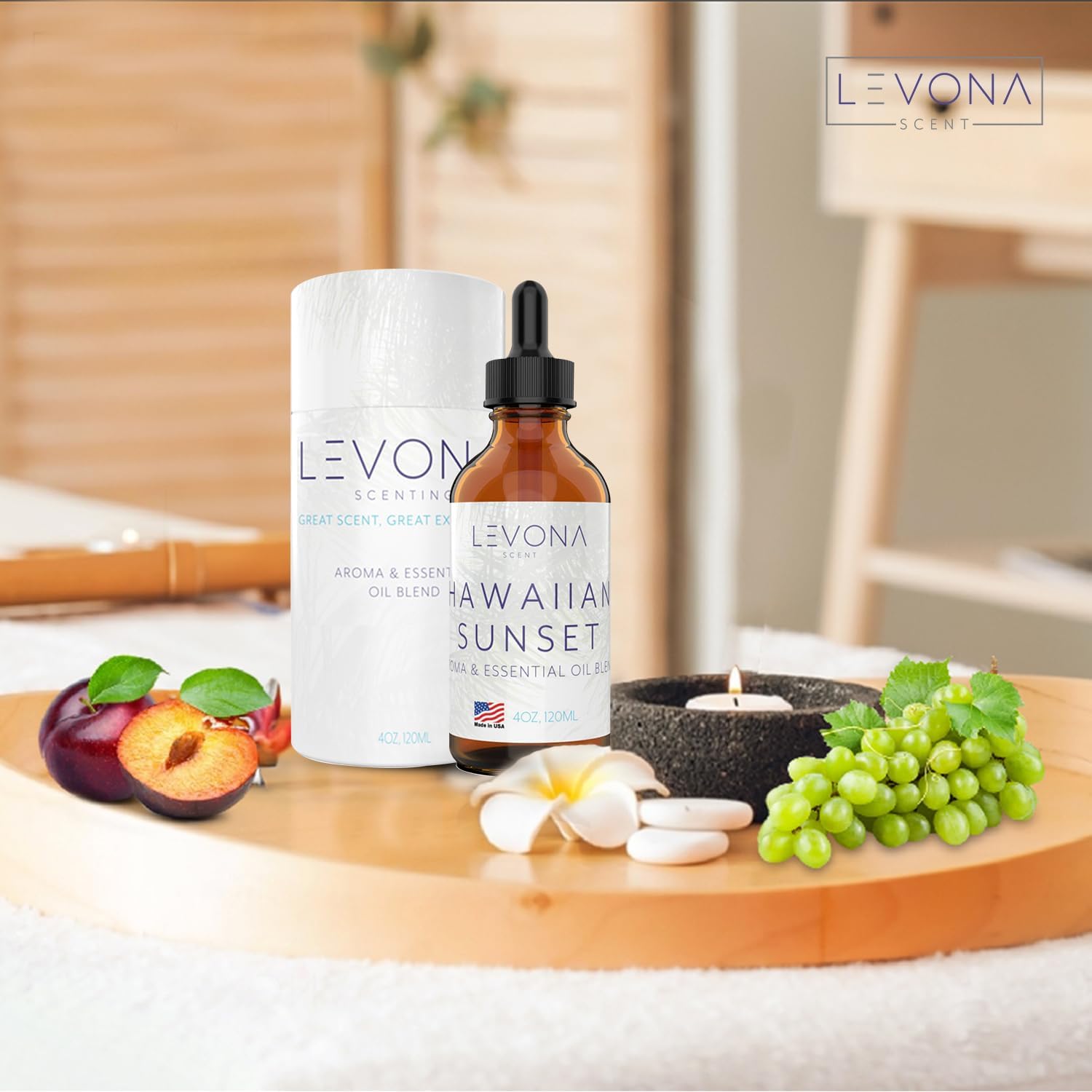 - REFRESHING BLENDS YOU’LL LOVE - Levona Scent's Hawaiian Sunset brings vibrant, tropical vibes to your space. Infused with mandarin citrus and a hint of peppermint, it creates a refreshing, invigorating atmosphere, transforming your home into a tranquil island escape.
