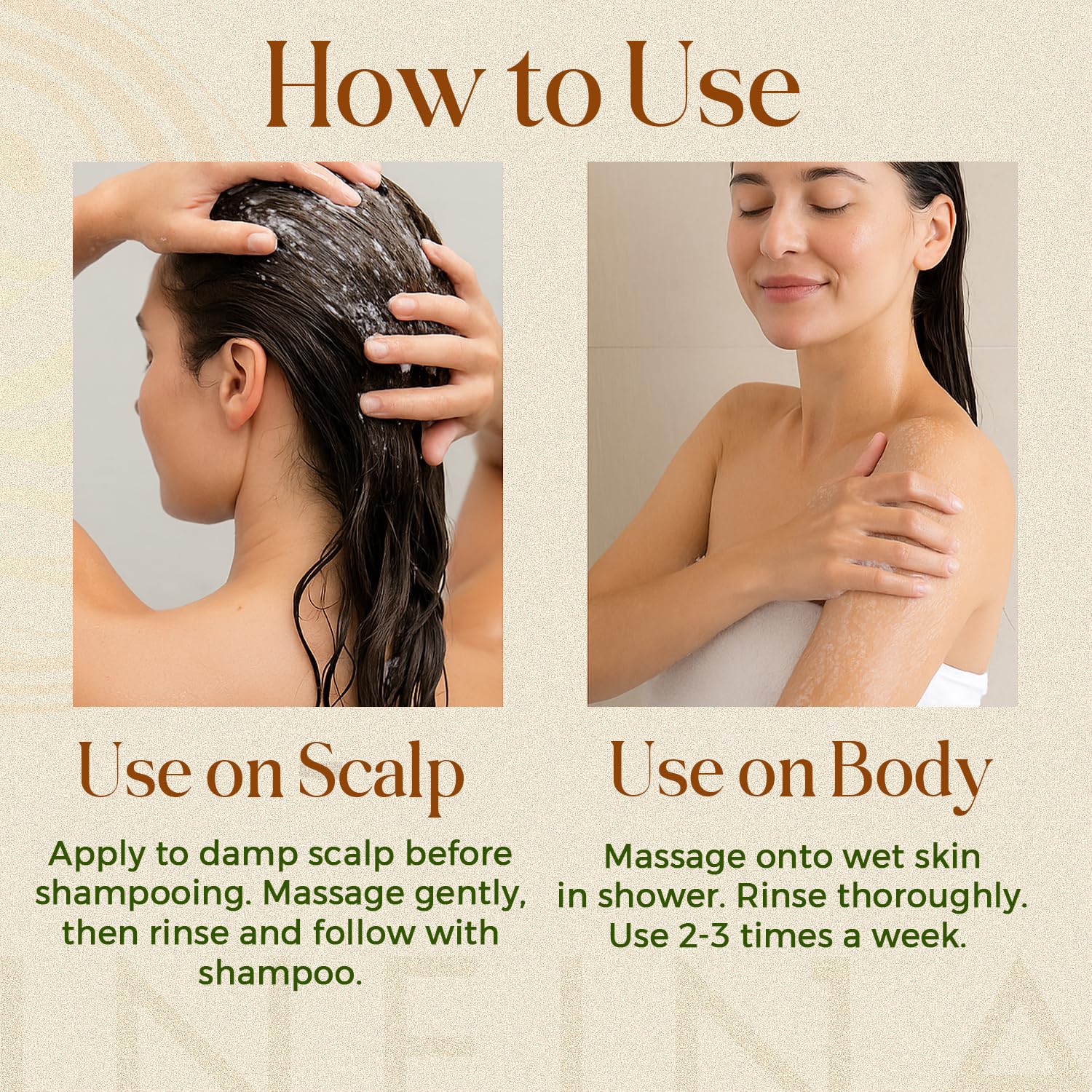 - ✅ Clean, Skin-Loving Formula: Free from parabens, sulfates, and harsh microbeads. Lightly scented, dermatologist-tested, and suitable for all skin types. Made for scalp + body synergy.