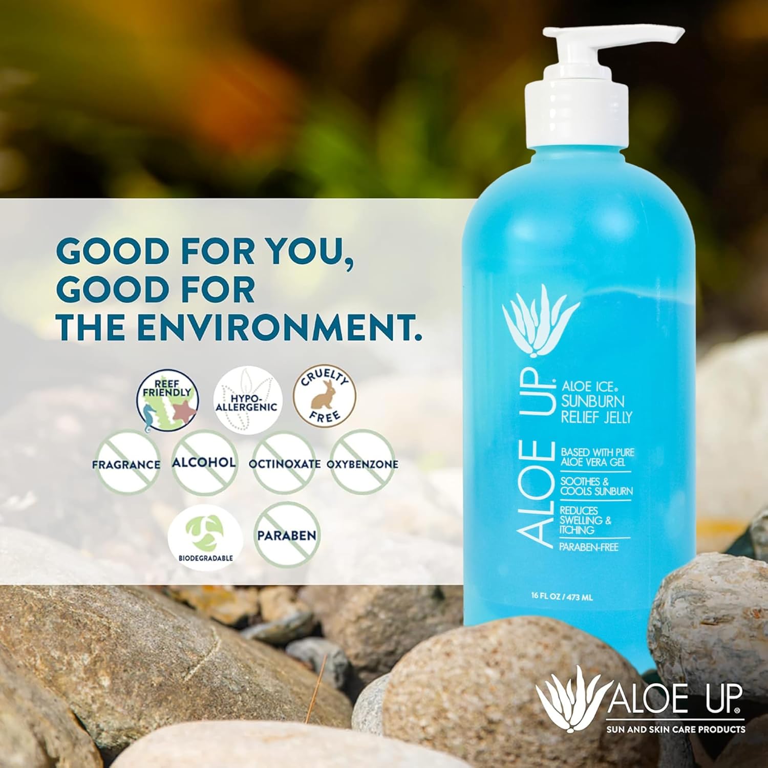 Aloe Ice Sunburn Relief Jelly – Face and Body Organic After Sun Gel – with 96.6% Pure Aloe Vera Gel – Reef Safe – Alcohol- and Fragrance Free – 16oz
