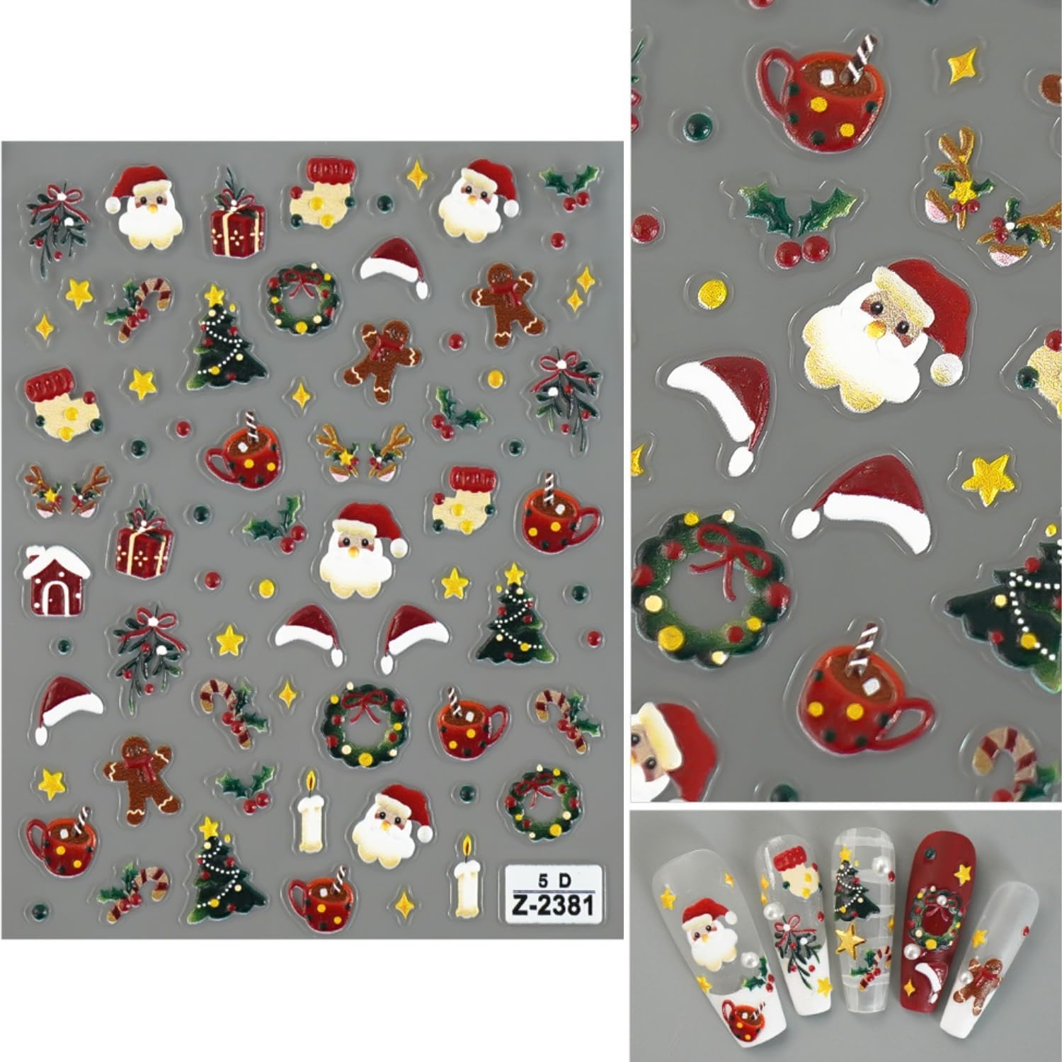 - 【Christmas Nail Design】5D embossed self-adhesive nail decals for nail art with beloved Christmas and New Year elements like Christmas trees and Santa Claus.These designs bring the holiday cheer directly to your nails.