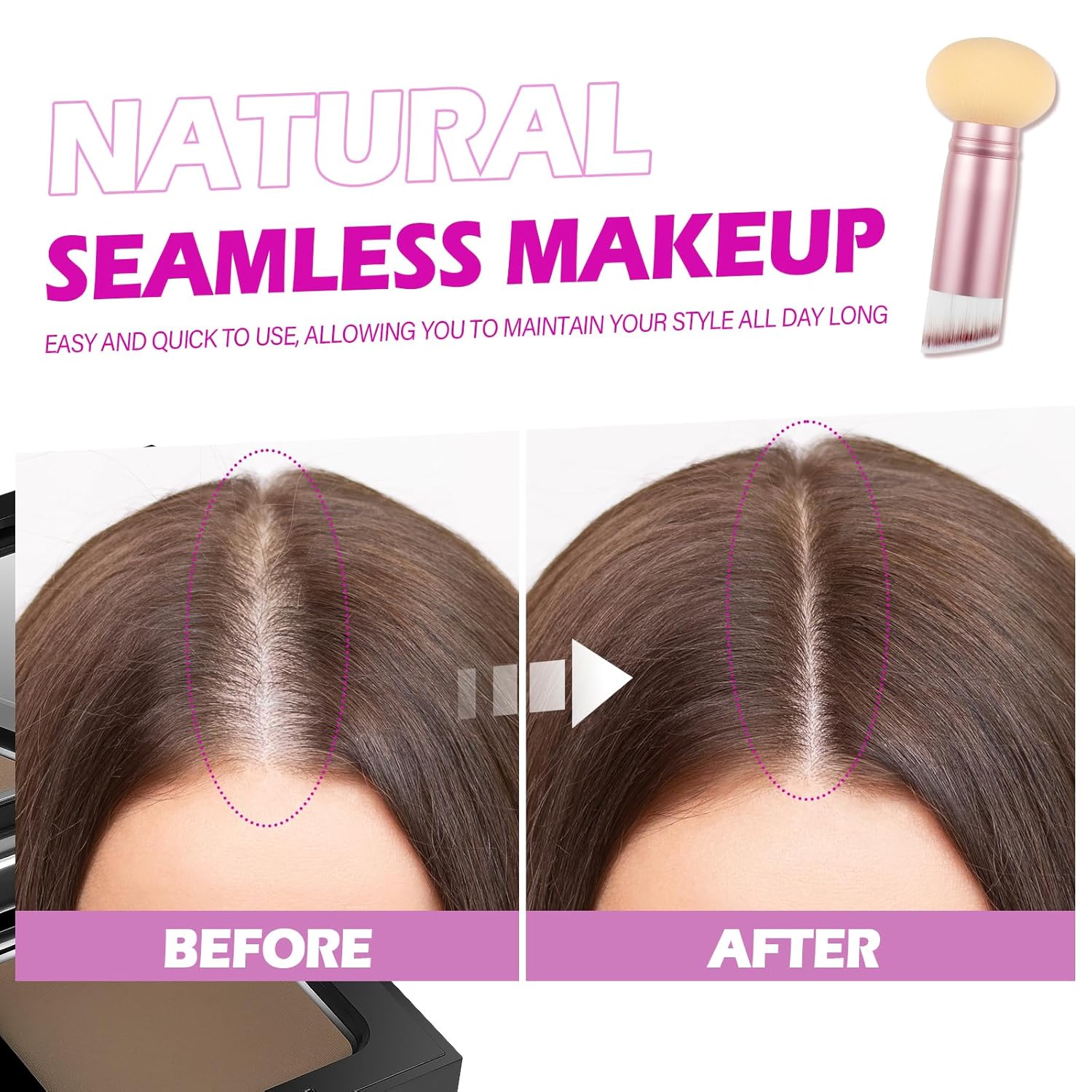 - COMPACT ROOT TOUCH UP HAIR COLOR: Unique travel kit design, hairline shadow powder come with mirror, hairline powder, powder puff and rose pink dual-ended hair makeup brush applicator with sponge tip, convenient to carry on daily or traveling. You can cover hair root instantly, define your hairline and make up at anytime, anywhere