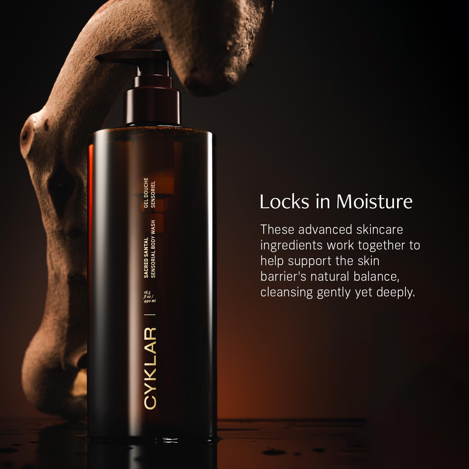 Sensorial Body Wash. Sacred Santal Hydrating Cleanser with Moisture Locking Multi-Oil Complex, Sodium PCA and Glycerin. Nourishing Shower Gel for Women and Men, 16.5 Fl Oz Luxury Bodywash