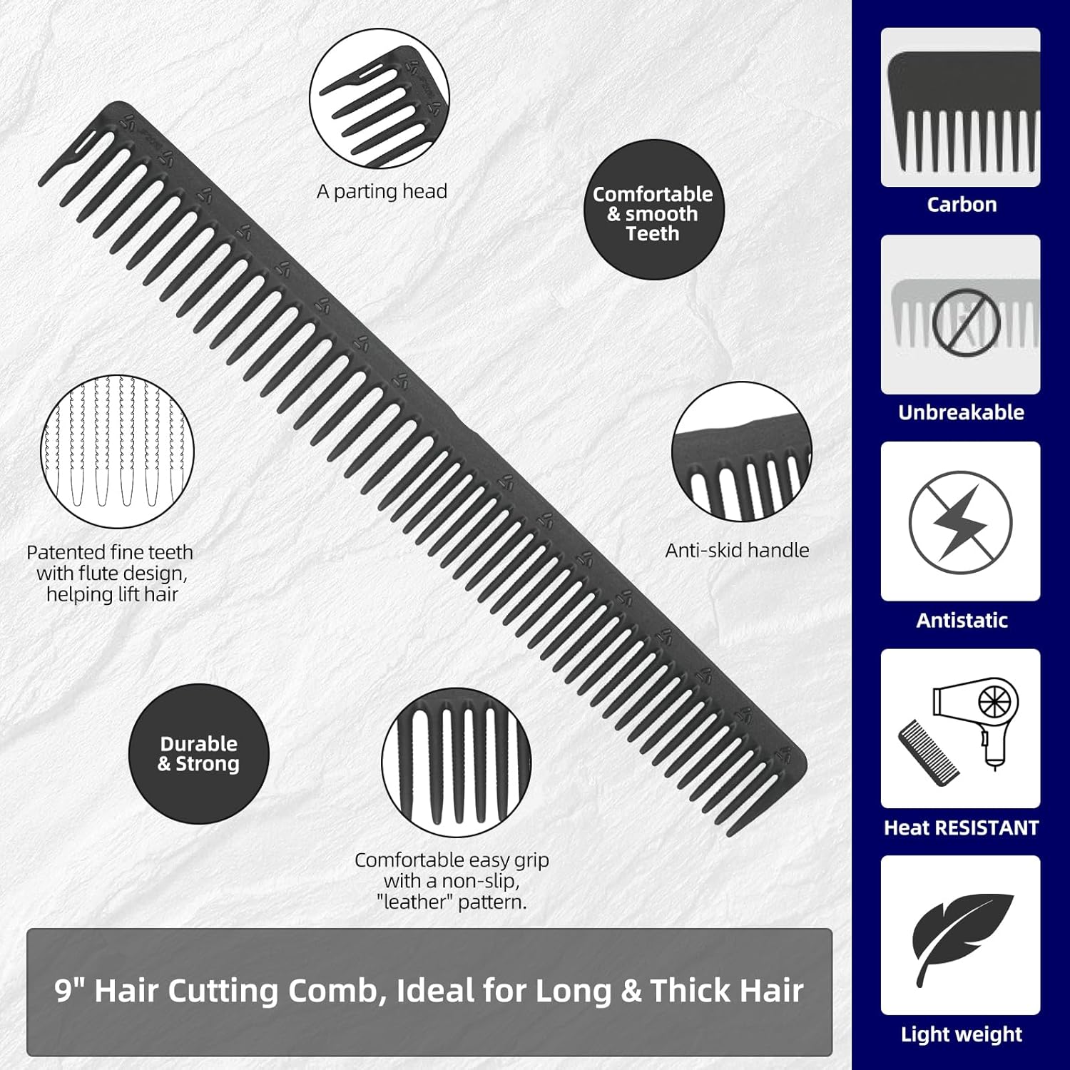 - High Durability: Our 2-pack carbon combs are heat resistant up to 350 F, anti-static, virtually unbreakable, and lightweight, providing long-lasting use for both professional and home environments.