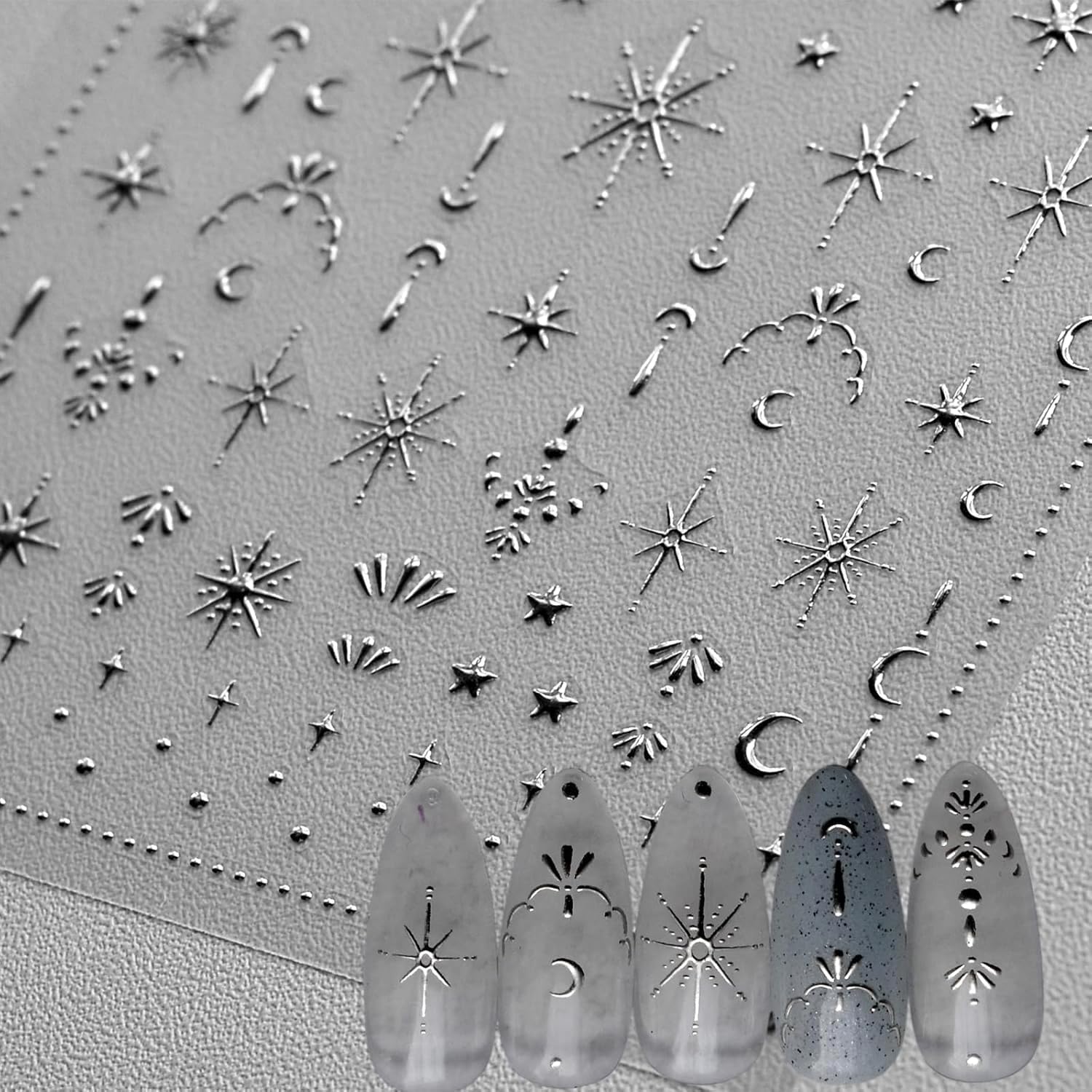 Moon Star 3D Silver Nail Stickers - Luxury Nail Art Design for Women & Girls - DIY Manicure Decoration