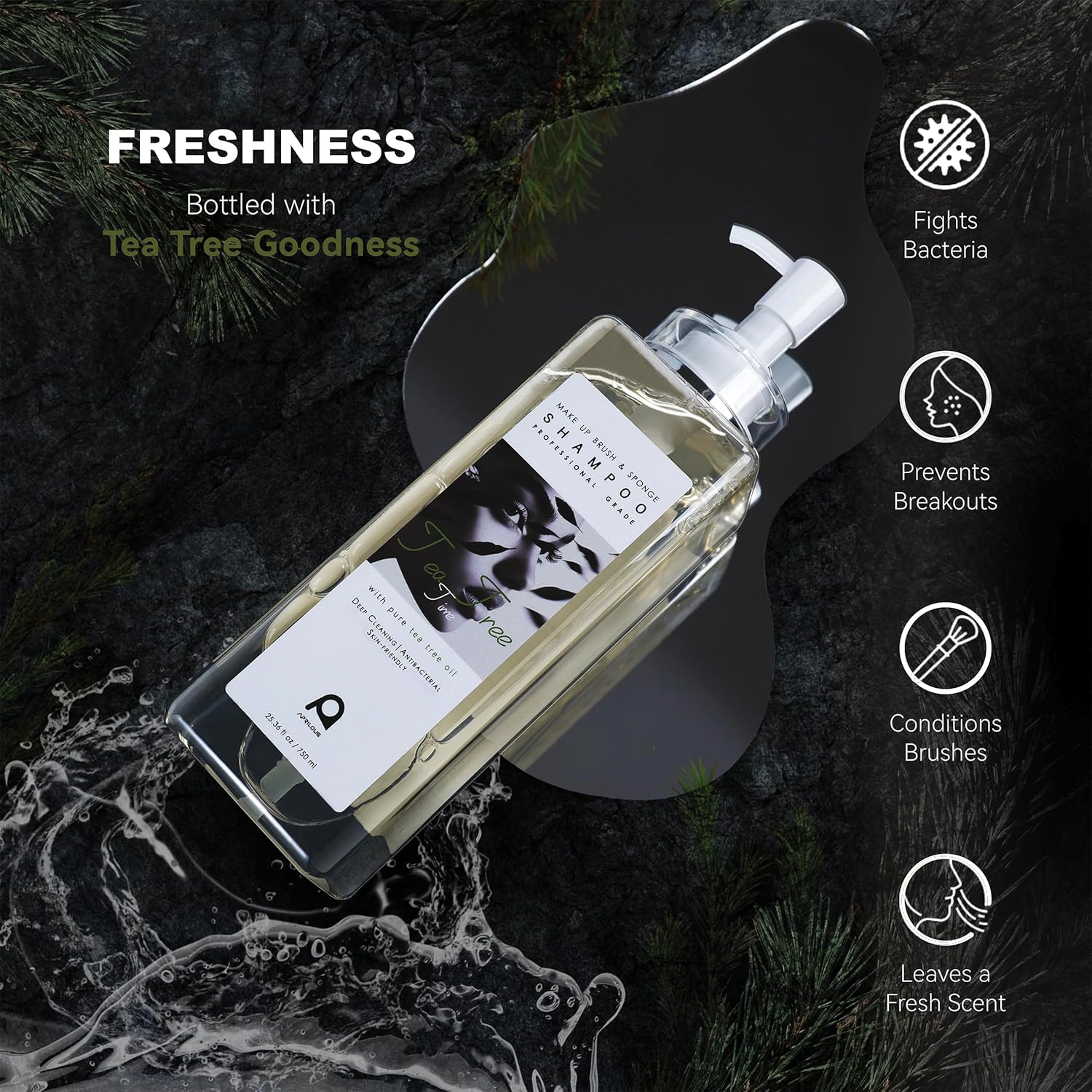 - [Tea Tree Time] Packed with the natural benefits of pure tea tree essential oil, this cleaner does more than just remove makeup. Known for its antibacterial properties, tea tree oil helps fight bacteria and prevent breakouts. It keeps your brushes and sponges fresh, with a subtle, clean scent. Plus, the conditioning formula extends the life of your tools, making it the ideal choice for long-lasting, healthy tools.
