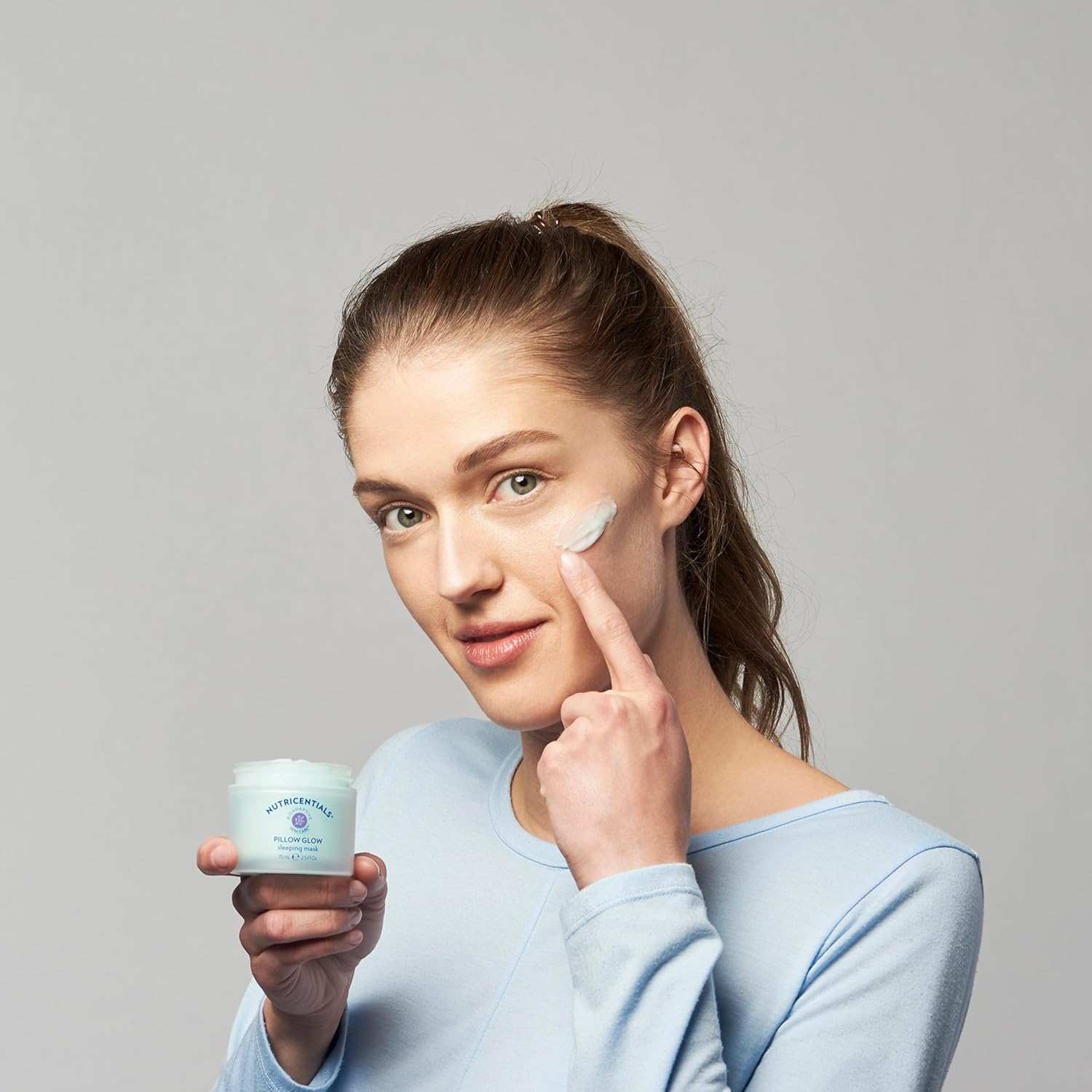 NuSkin NUTRICENTIALS Pillow Glow Sleeping Mask | Overnight Hydration | Bioadaptive Botanical Complex | Red Algae | Apple Extract | Deep Sea Water | Skin Glowing & Pore Minimizing | 2.5 Fl Oz | 2 Pack