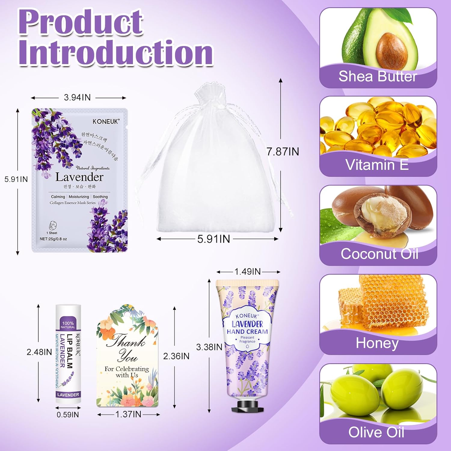 - 【Ideal Party Favors for Guests】Our bulk lip balm,hand lotion and facial mask sets have 6 different fragrances - lavender,Honey,lemon,grapefruit,shea butter,aloe.In addition,6 colorful and vibrant colors are perfect for weddings and party festivals,allowing every guest attending the event to receive a unique gift