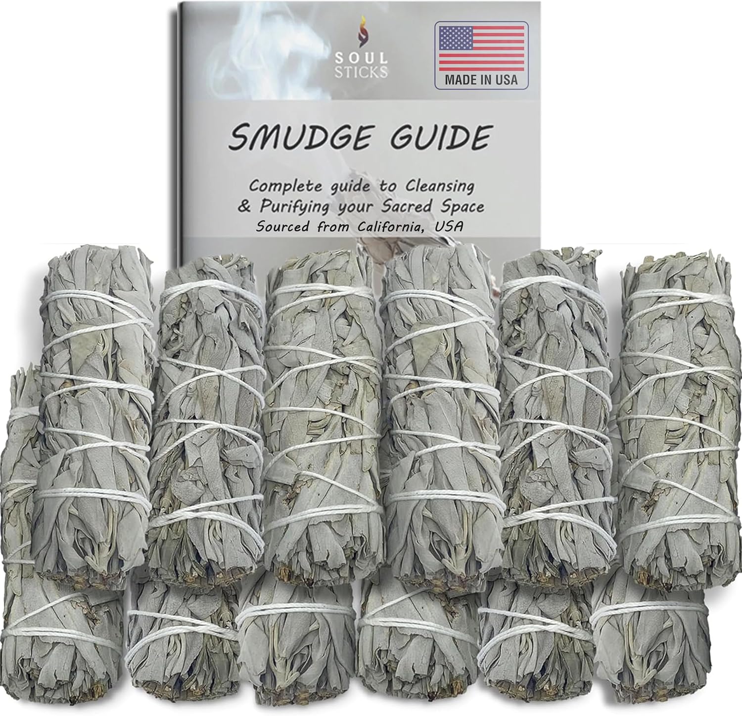 SOUL STICKS 6 Inch 12-Pack Organic California White Sage Smudge Sticks Bulk for Home Cleansing, Negative Energy Removal, Good Energy Meditation & Smudging Rituals | Pure Sage Bundles
