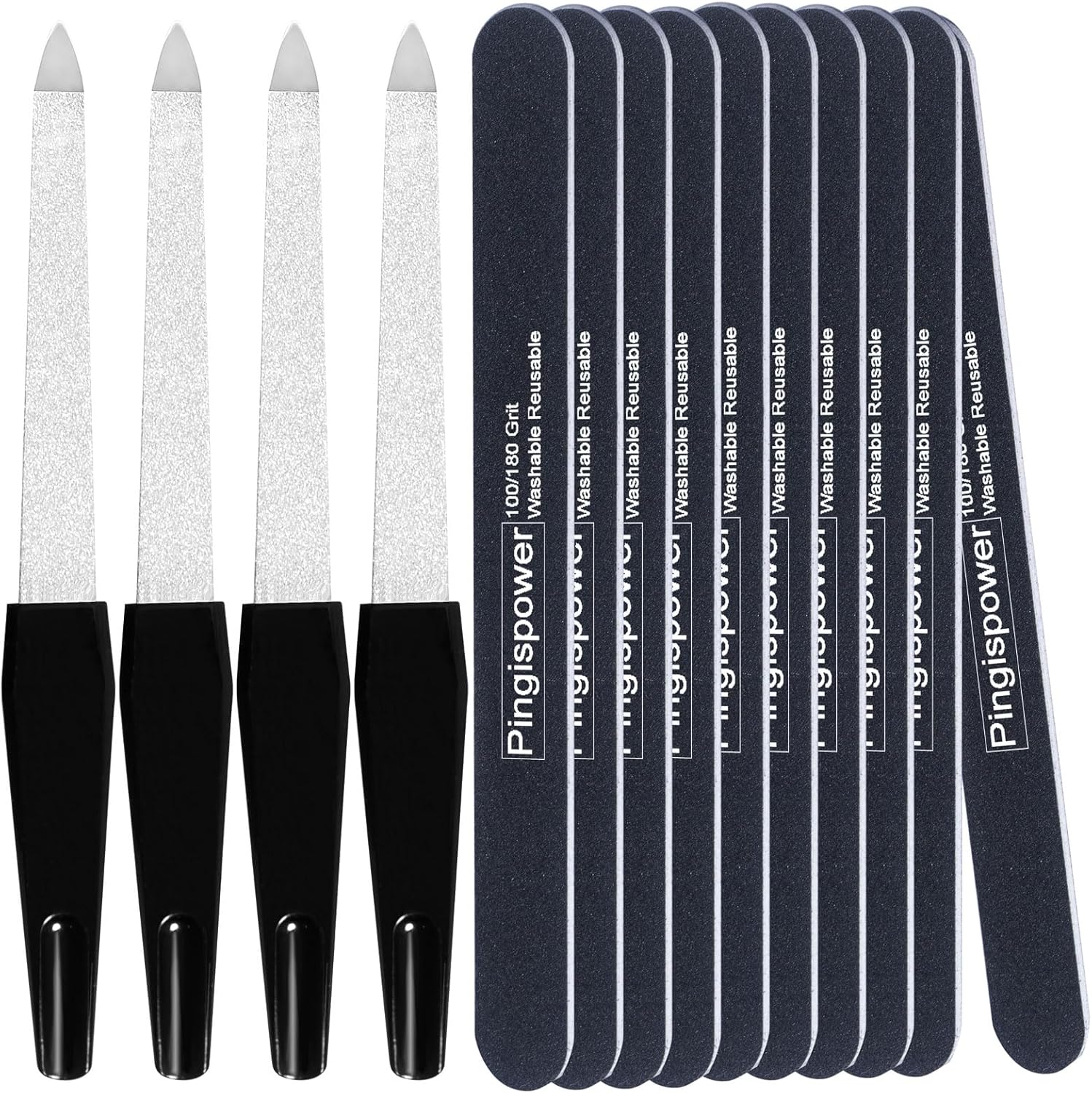 - 【 PREMIUM DUAL MATERIALS NAIL FILE SET 】14PCS nail file set includes: 4 stainless steel metal nail files ( ABS non-slip handle, double-sided medium/fine grit ) + 10 Korean emery board nail files ( 100/180 grit ) for natural / acrylic / gel nails care.