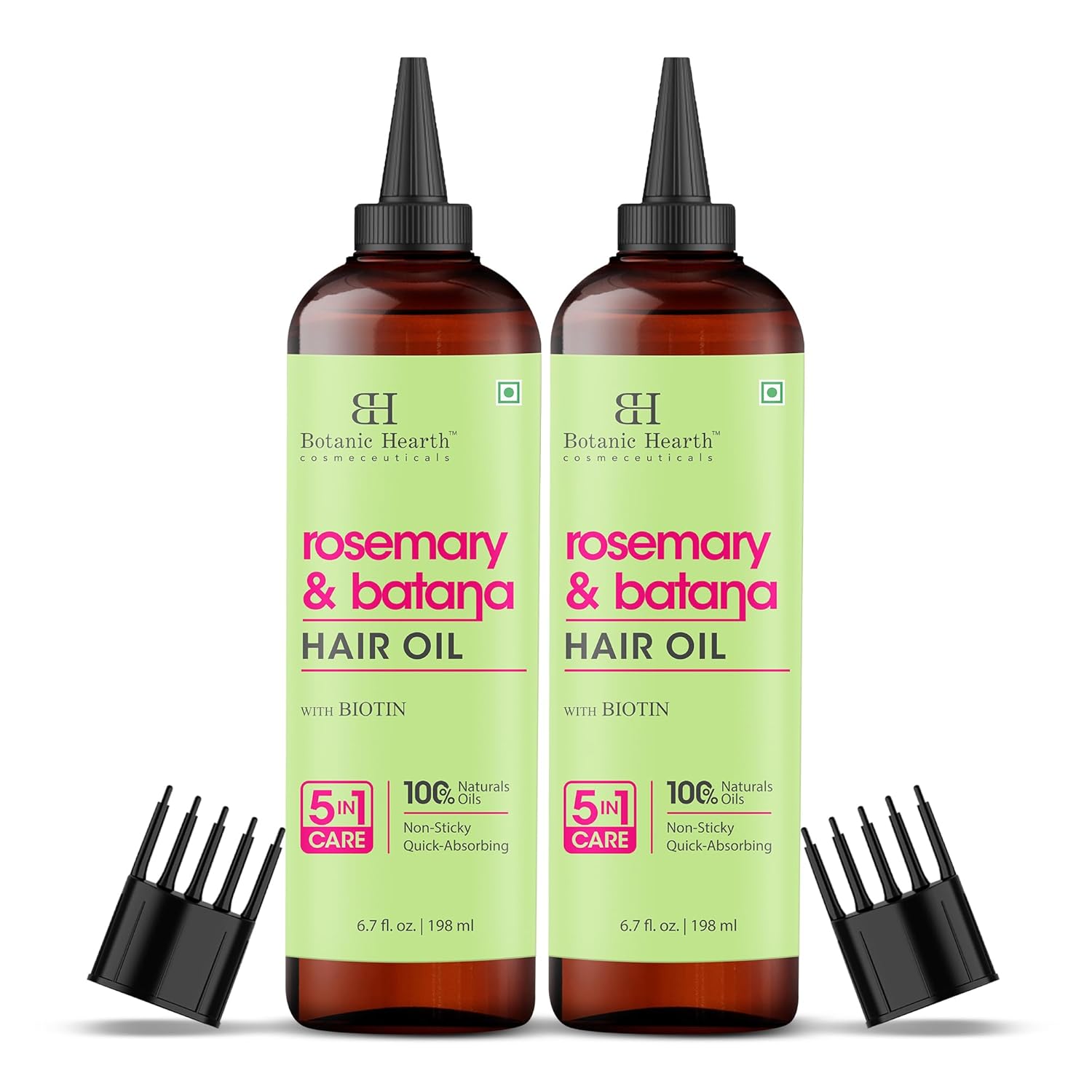 Botanic Hearth 100% Pure Rosemary Batana Hair Oil (2fl oz-Pack of 2) with Biotin |Hair Oil Repairs Dry Damaged Hair, Strengthening, Healthier Hair- Hair Tonic