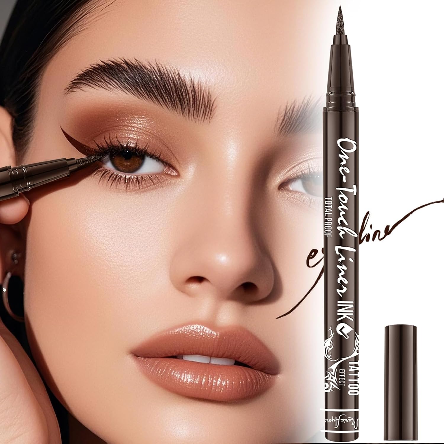 Triple Pack of Vegan-Approved Hypoallergenic Liquid Eyeliner Pens, Tattoo Effect, Quick Dry, Waterproof, Smudgeproof, Long-lasting & Felt Tip Eyeliner pen: Precision Beauty for Women (Dark Brown)