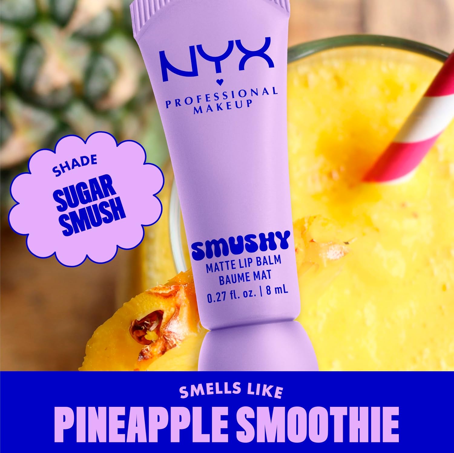 NYX PROFESSIONAL MAKEUP Smushy Matte Lip Balm, Tinted Lip Moisturizer with Soft, Matte Finish - Sugar Smush (Transparent)