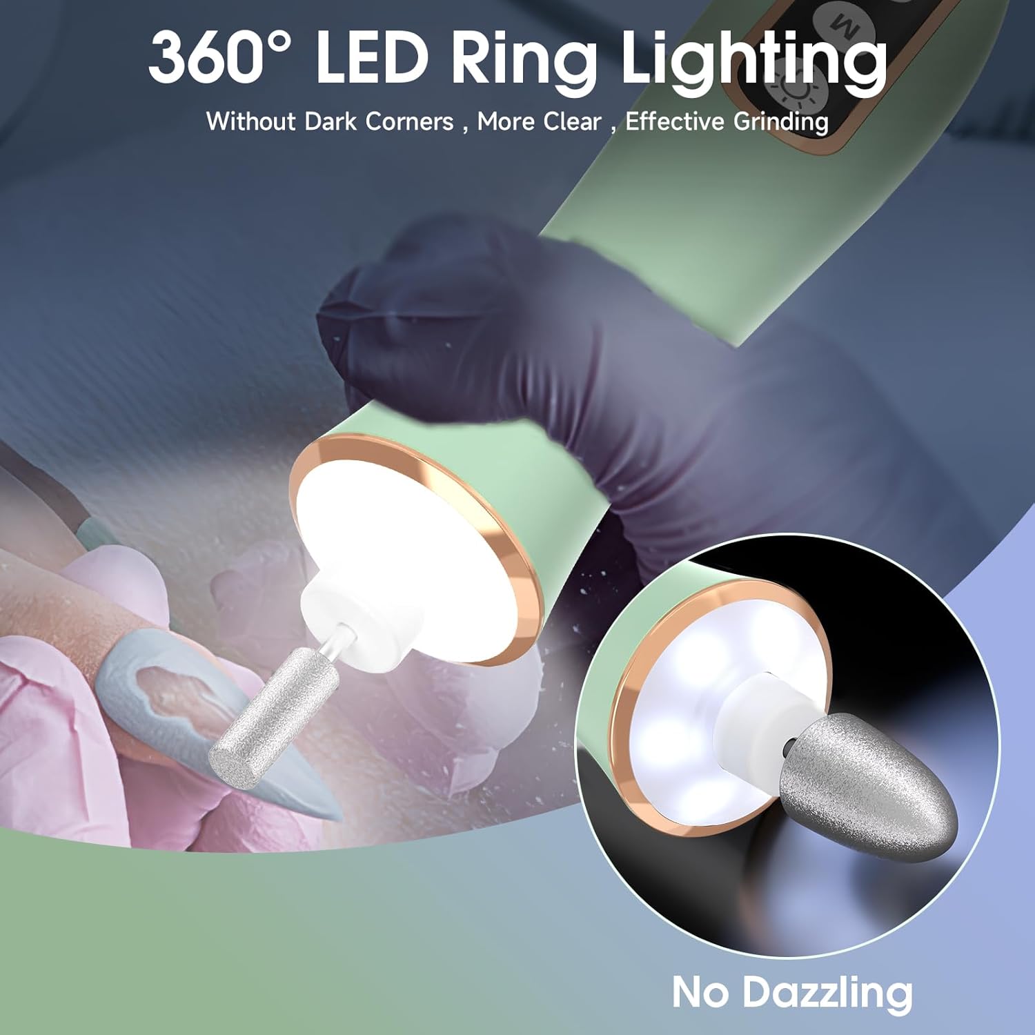 - 360°LED light & Cordless & Portable: If you tired of messy cords and heavy Power Machine, Then your search stop !!! Hoxida Cordless nail dril machine is lightweight, and portable with you wherever you go, professional nail file with 360°LED light, provide you a surrounded clearer view of your grinding area, more efficient and professional for manicure and pedicure home salon use, or travel , you can do a spa hand and foot care experience at anytime anywhere you want.