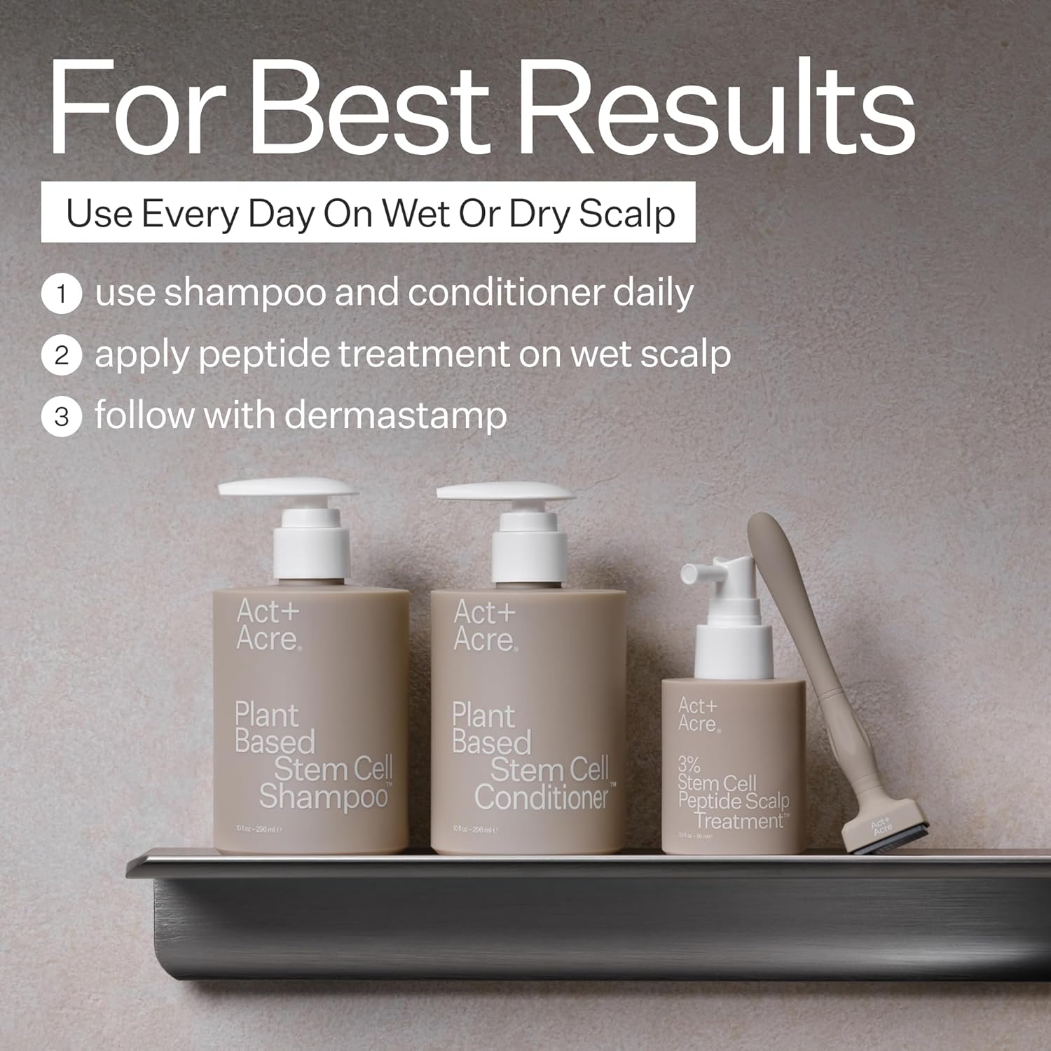 ACT+ ACRE Stem Cell Shampoo | Boosts Density, Hydrates Scalp, Removes Build-Up | Thicker, Fuller Looking Hair | Swiss Apple Stem Cells, Caffeine, Hyaluronic Acid | Vegan, Cold Processed® | 10 Fl Oz