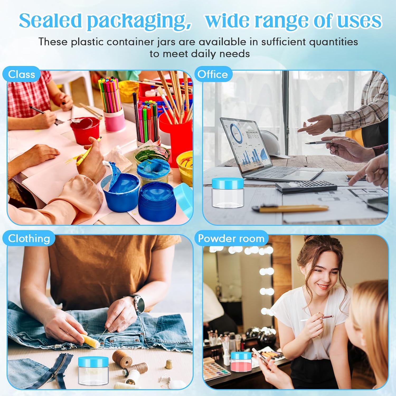 SATINIOR 100 Pcs Plastic Jars with Lids Small Containers Lids Wide Mouth Small Plastic Containers for Lotion Cream Rhinestones Body Butters Travel Storage(2 oz,Blue)