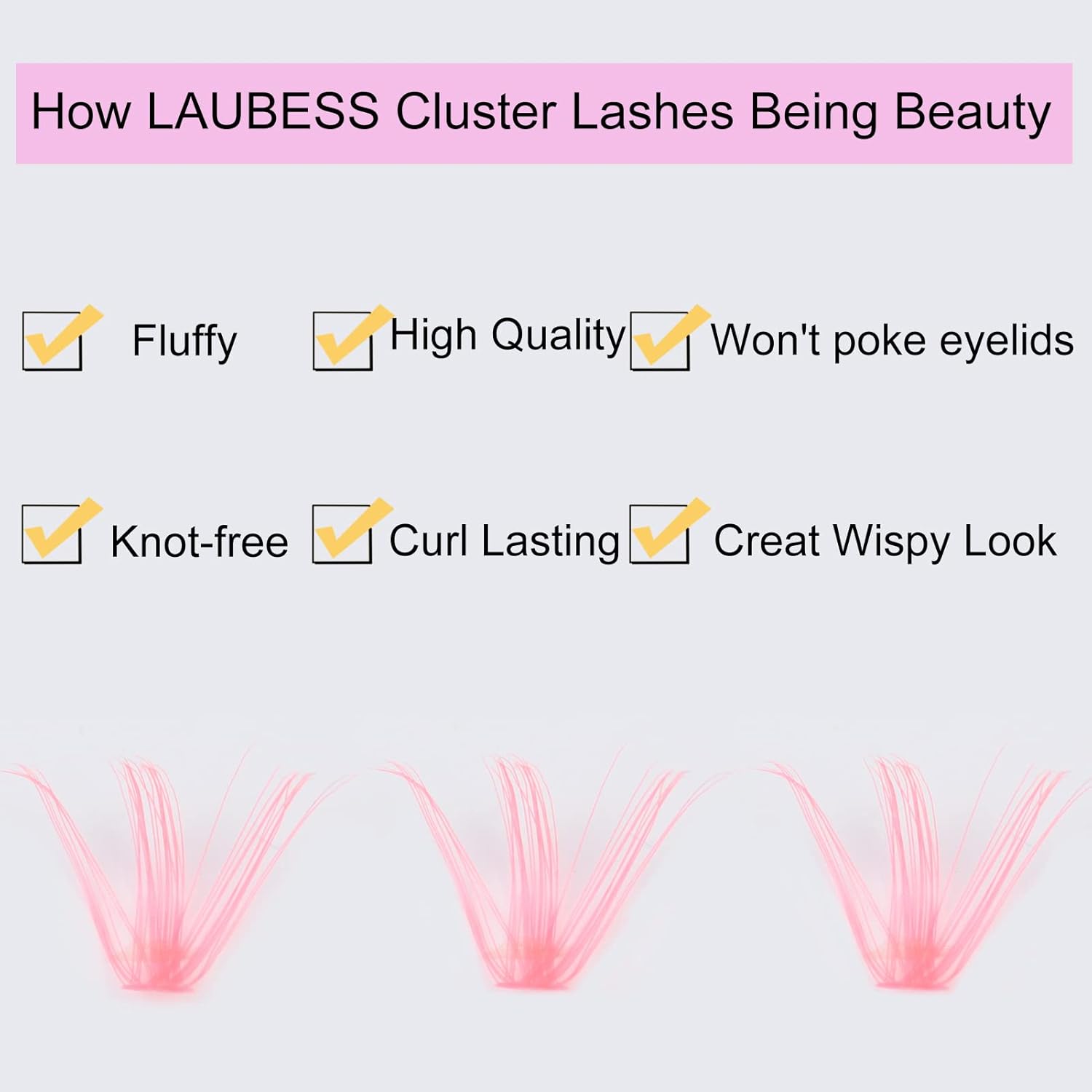 - Satisfactory Support: LAUBESS is keeper of your beauty. Please rest assured to try lash clusters. If you have any question about LAUBESS cluster lashes, we will give you satisfactory result.