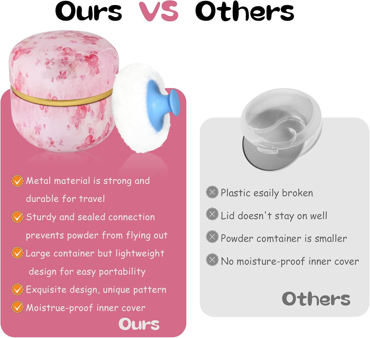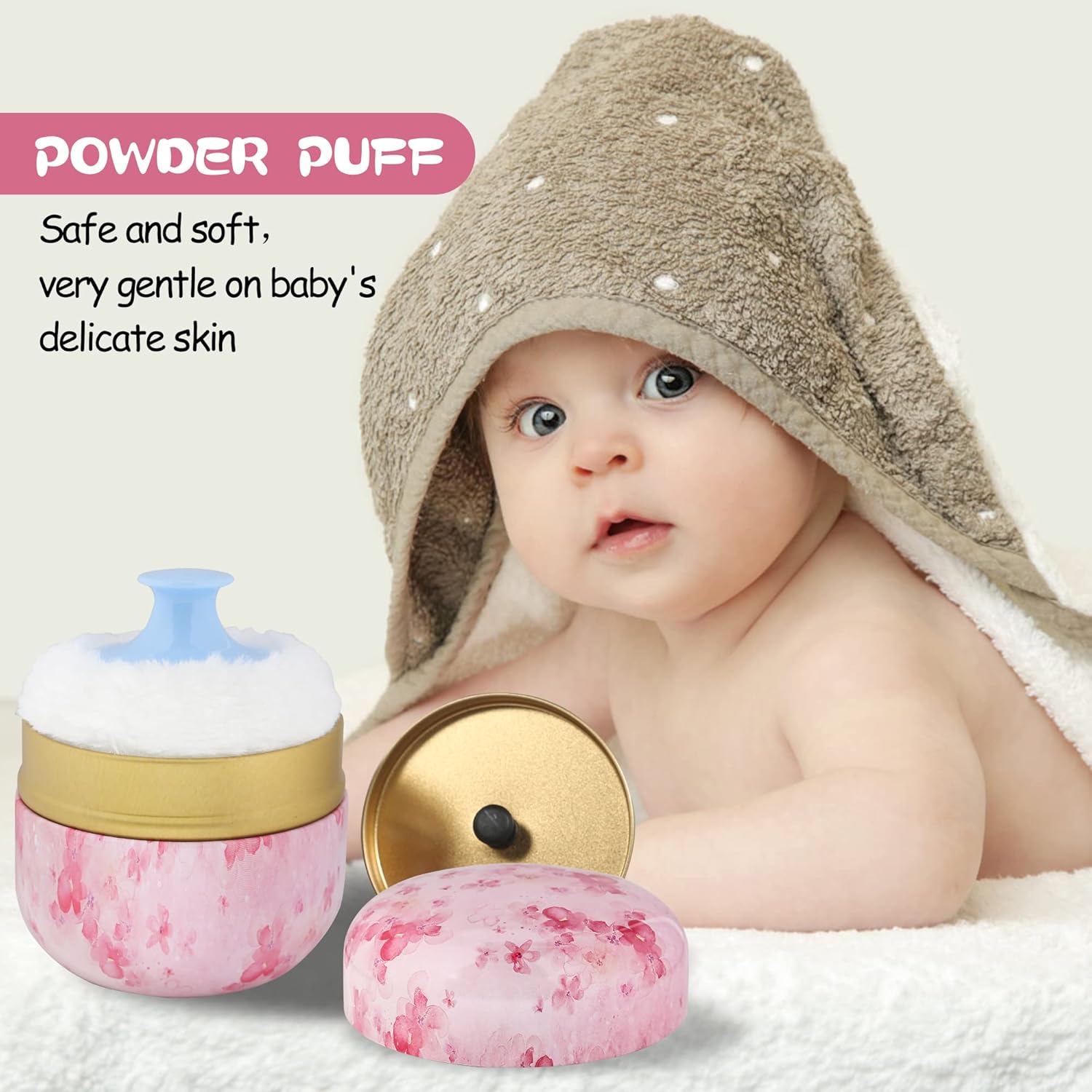 - Product contains a well-made powder case, a high quality powder puff with a handle and a small powder puff.