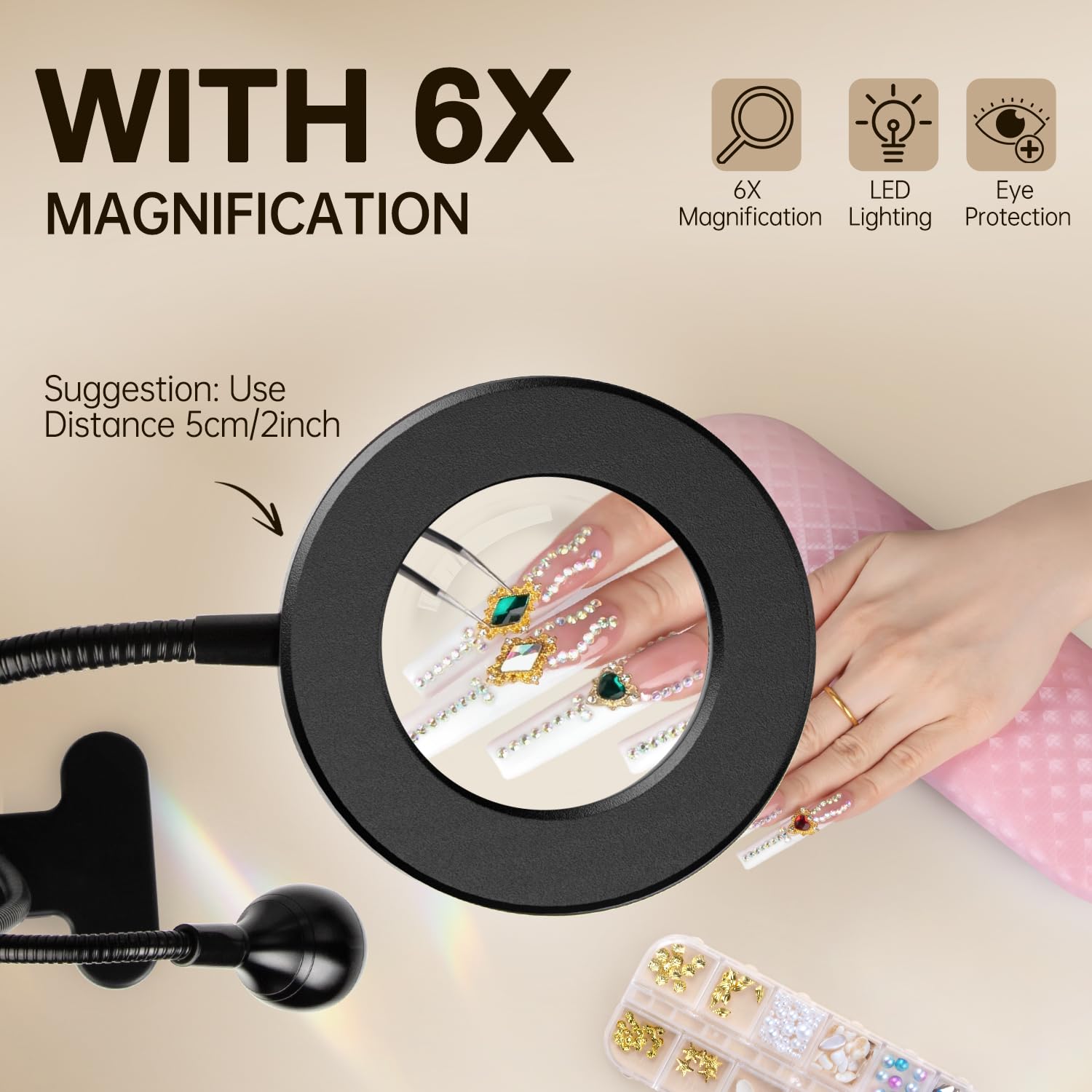 - 【Dimming Function】AORAEM goose neck uv lamp has the function of adjustable light: white led light with 6x magnification have 3 lighting color modes (3000K, 4500K, 6000K) and 4 levels of adjustable brightness. (Purple uv light is not adjustable) . You can adjust the lighting color or brightness of your soft gel tips lamp according to your needs.