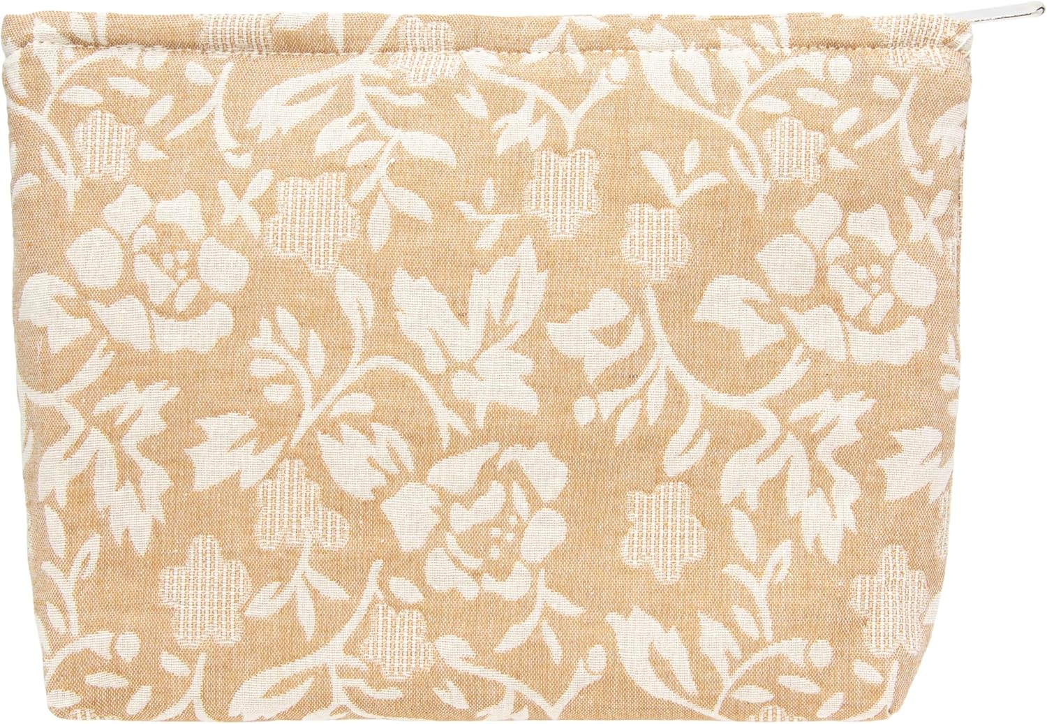 PAZIMIIK Makeup Bag Large Cotton Zipper Pouch for Purse Travel Canvas Make Up Organizer for Women Cosmetic,Rose Linen