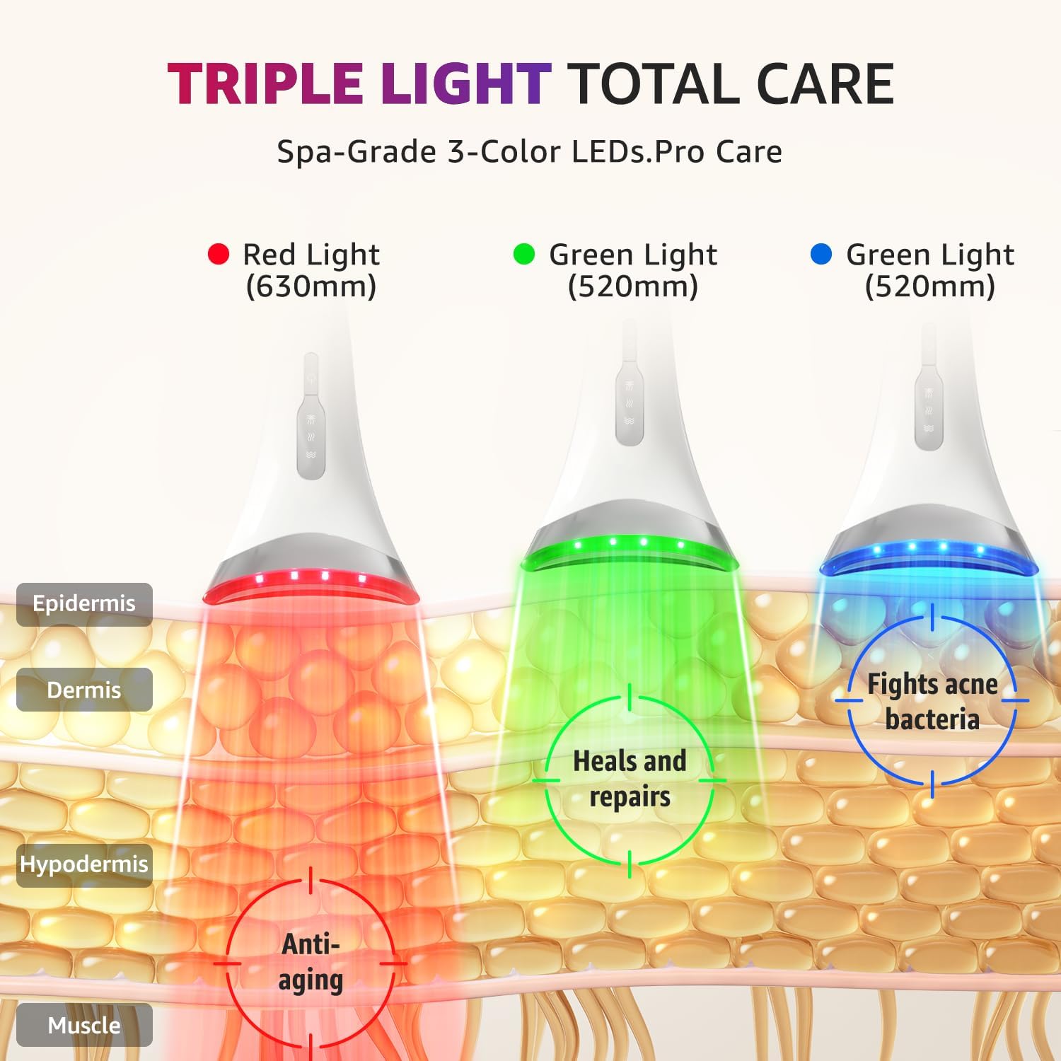 - Red Light Therapy for Anti-Aging Power: Harness the rejuvenating benefits of red, blue, and green light therapy to reduce wrinkles, combat signs of aging, and promote radiant skin. Our skin tightening device uses advanced light technology combined with soothing vibrations and heat, delivering professional skincare results from the comfort of your home.