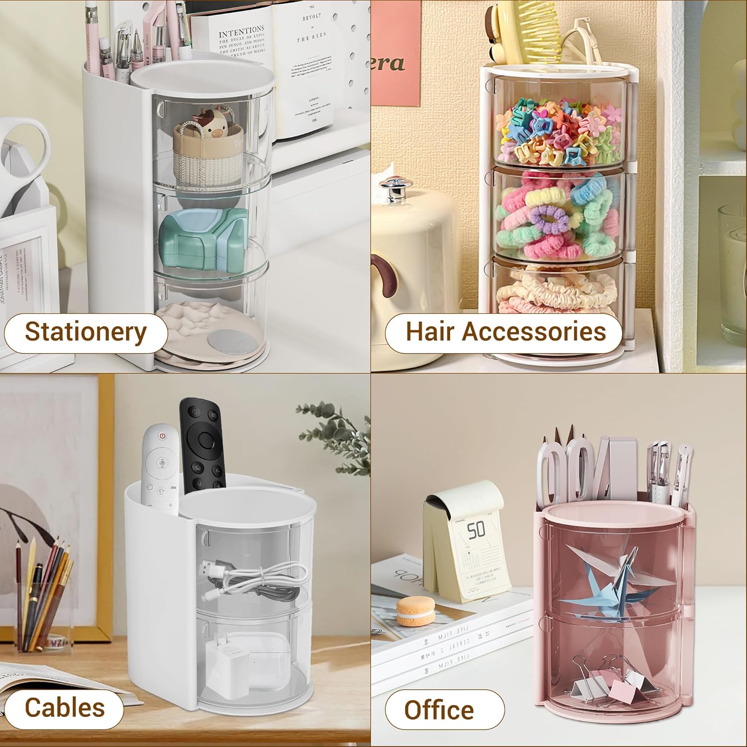 - ✅【Rotatable Design】The hair brush holder unique 180° rotatable design allows you to quickly find the powder puff, beauty egg, cotton swab or hairpin you need with just a slight turn, without the hassle of searching, saving you makeup time