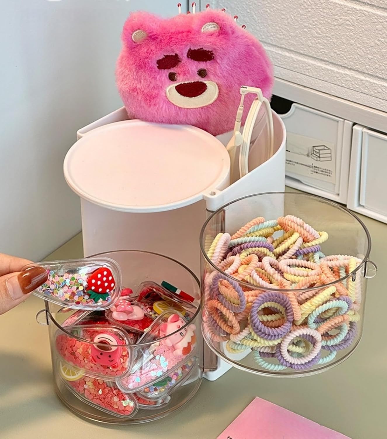 - ✅【Simple and Practical】 The hair tie organizer two-grid design on the top can be used to store different types of items, keeping the desktop neat and tidy. This design is not only convenient for temporary storage of daily necessities, but also can be used at any time, providing great convenience and flexibility for your life!