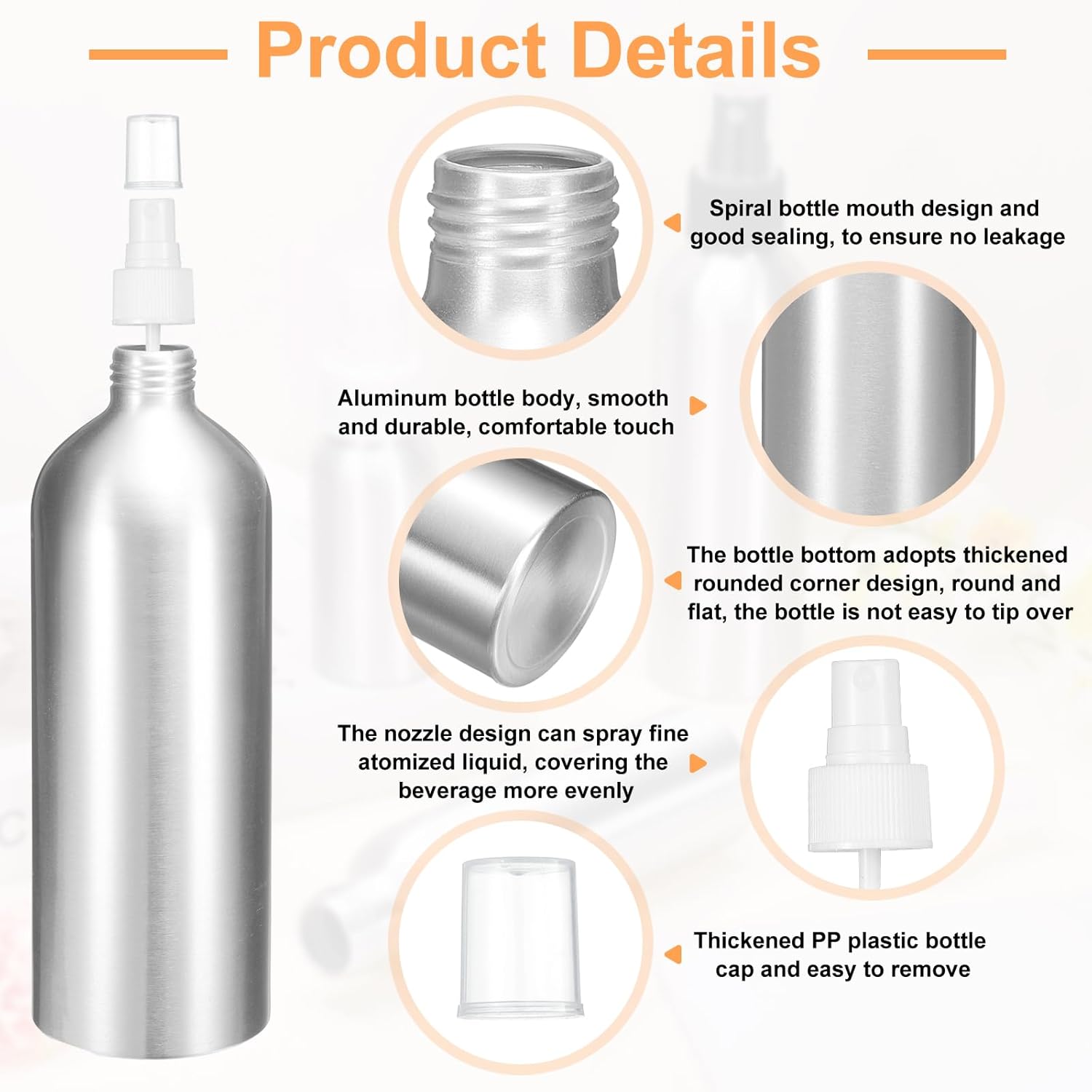 - Applications - This metal refillable container is widely used in kitchens, bathrooms, offices, travel vacations, etc., and can be used to store floral water, perfume, spray, essential oils, air freshener, toner, etc