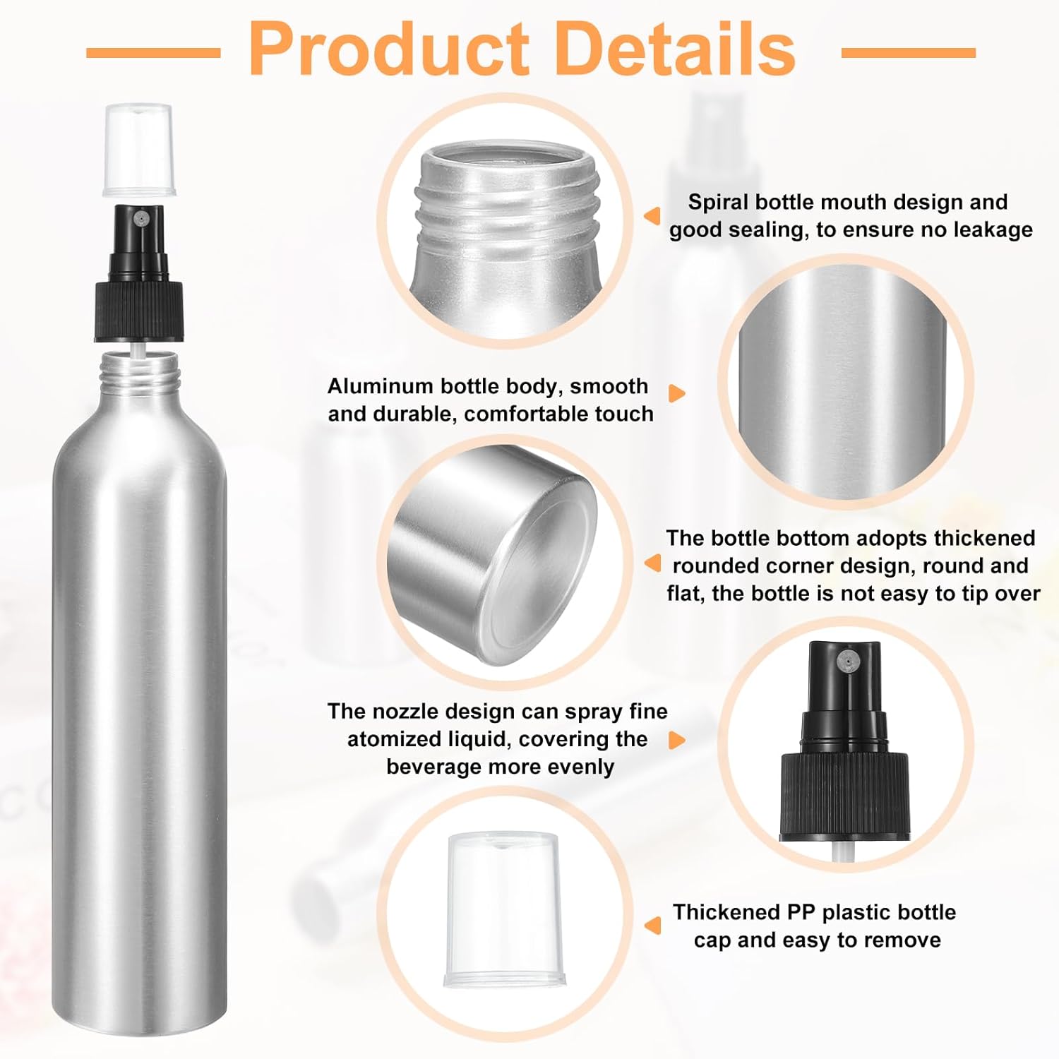 - Applications - This metal refillable container is widely used in kitchens, bathrooms, offices, travel vacations, etc., and can be used to store floral water, perfume, spray, essential oils, air freshener, toner, etc