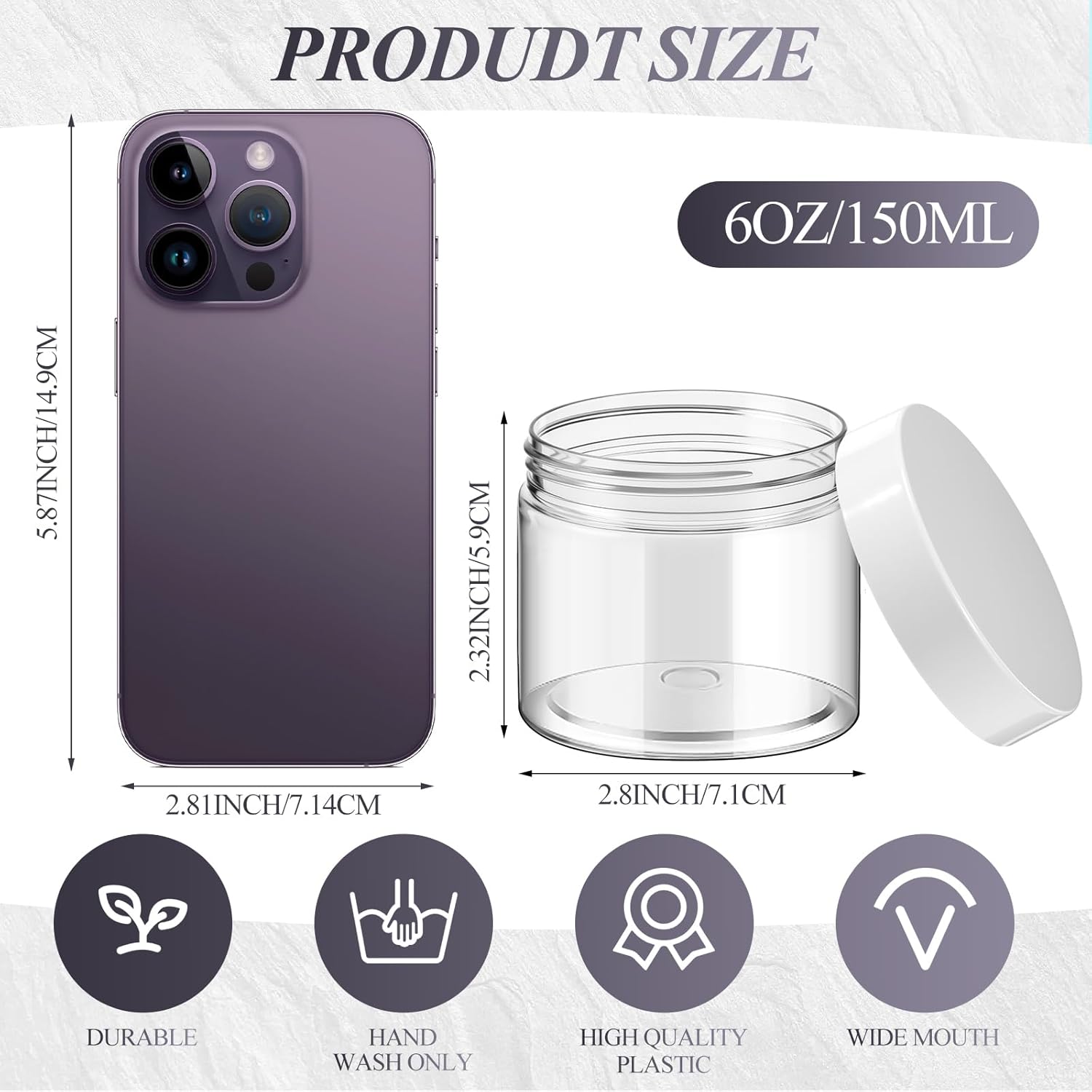 - Quality Material: the plastic jars with lids are made of quality plastic, without odd smell, does not contaminate your skincare products, stable, high temperature resistance, sealed storage and leak proof