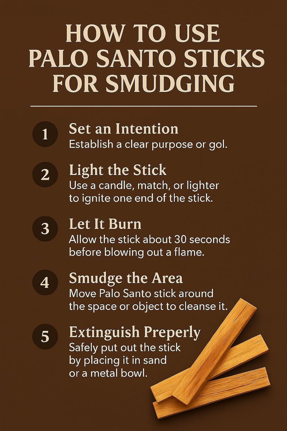 - ✅ Use a match or a lighter to ignite your Palo Santo. Hold your Palo Santo at a 45 degree angle with the point of the stick touching the flame. Let the wood stay lit for 30 seconds, and then blow the flame out. Allow the smoke to fill the space that you need to cleanse. When you are finished, lay the wood with the ignited tip downward in a bowl. It will put itself out.