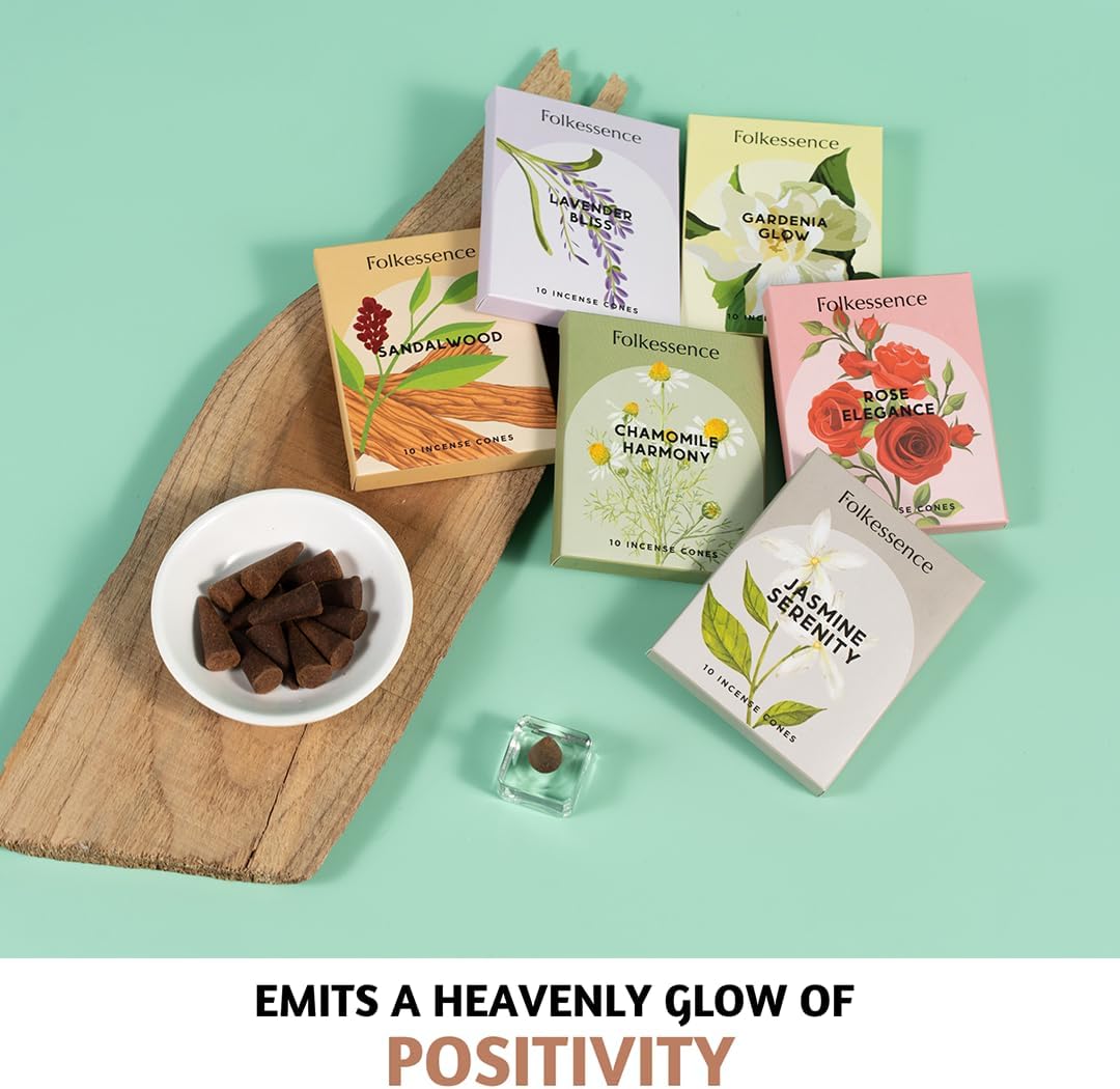 Folkulture Incense Cones Scented | Set of 6 (60 Cones) Pack for Relaxation | Rose, Chamomile, Jasmine, Lavender, Sandalwood Inscents for Gifts for Her | Incense Cone Variety Pack