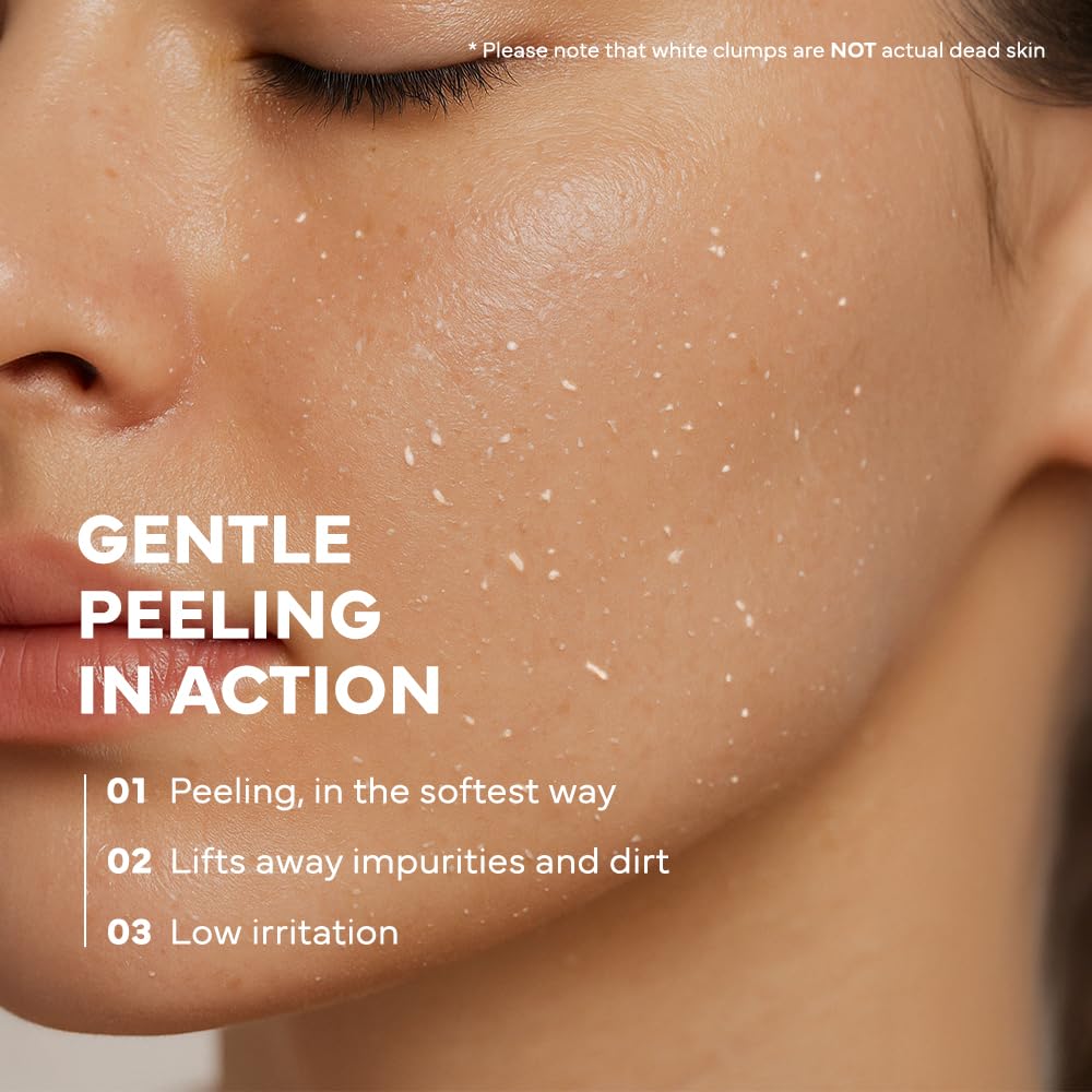 - How to Use - Apply a thin layer to dry skin after cleansing, avoiding the eyes and lips. Gently massage in circular motions for less than 1 minute, then rinse thoroughly with lukewarm water. Use 2–3 times weekly, focusing on areas like the nose, chin, or dull patches where makeup tends to cake or flake.