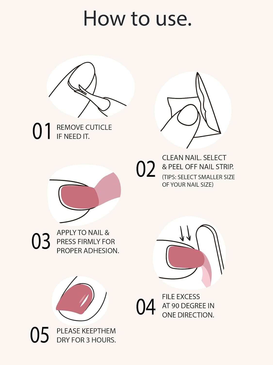 - These nail strips are perfect for anyone who’s in a rush but still wants a salon-quality finish anytime, anywhere any weather. No waiting time—just STICK & GO!