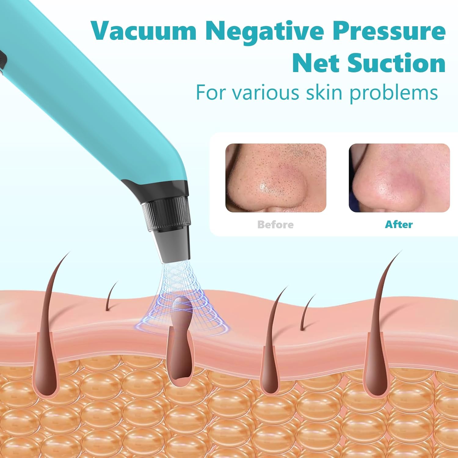 - 【 Blackhead Remover Tools 】Our upgraded blackhead vacuum provides powerful yet gentle deep facial cleansing. It effectively removes blackheads, whiteheads, dead skin, acne,oil and cosmetic aresidue.