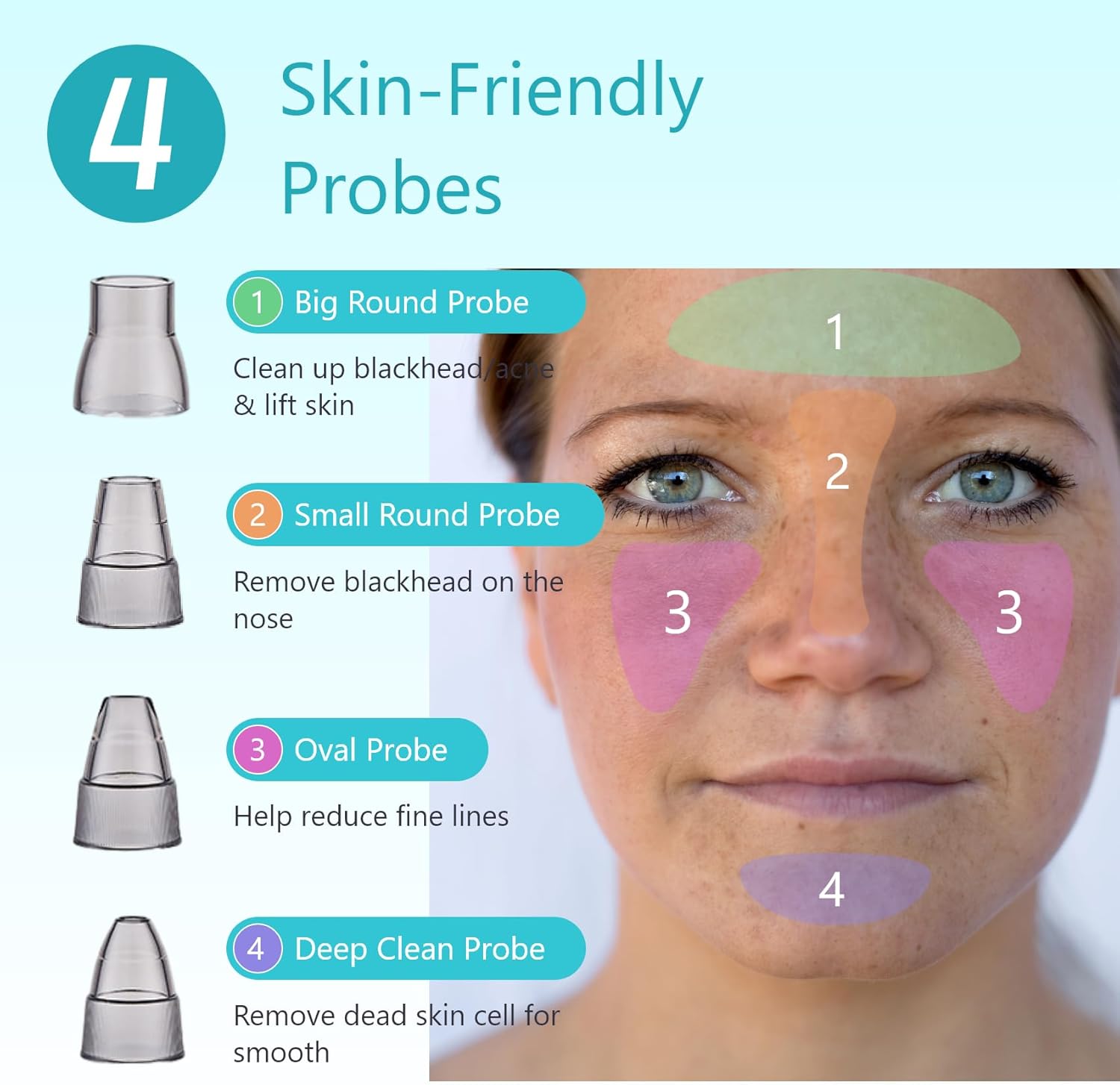 - Tips:Our Blackhead Remover Vacuum with 4 pcs interchangeable suction heads and includes 4 pcs bonus pimple popper tools. They can be rinsed with water to keep them clean