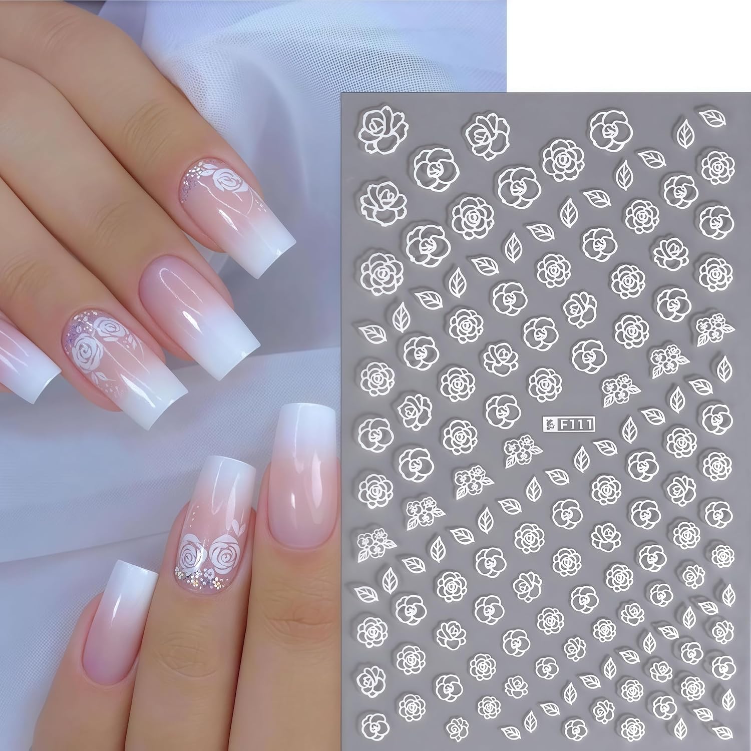 - Easy to Use:Cute whit floral nail stickers decal are self-adhesive,completing fashion-cool nail art design in just a few seconds. If you want to keep it for a long time, you need to apply nail polish on the surface for reinforcement