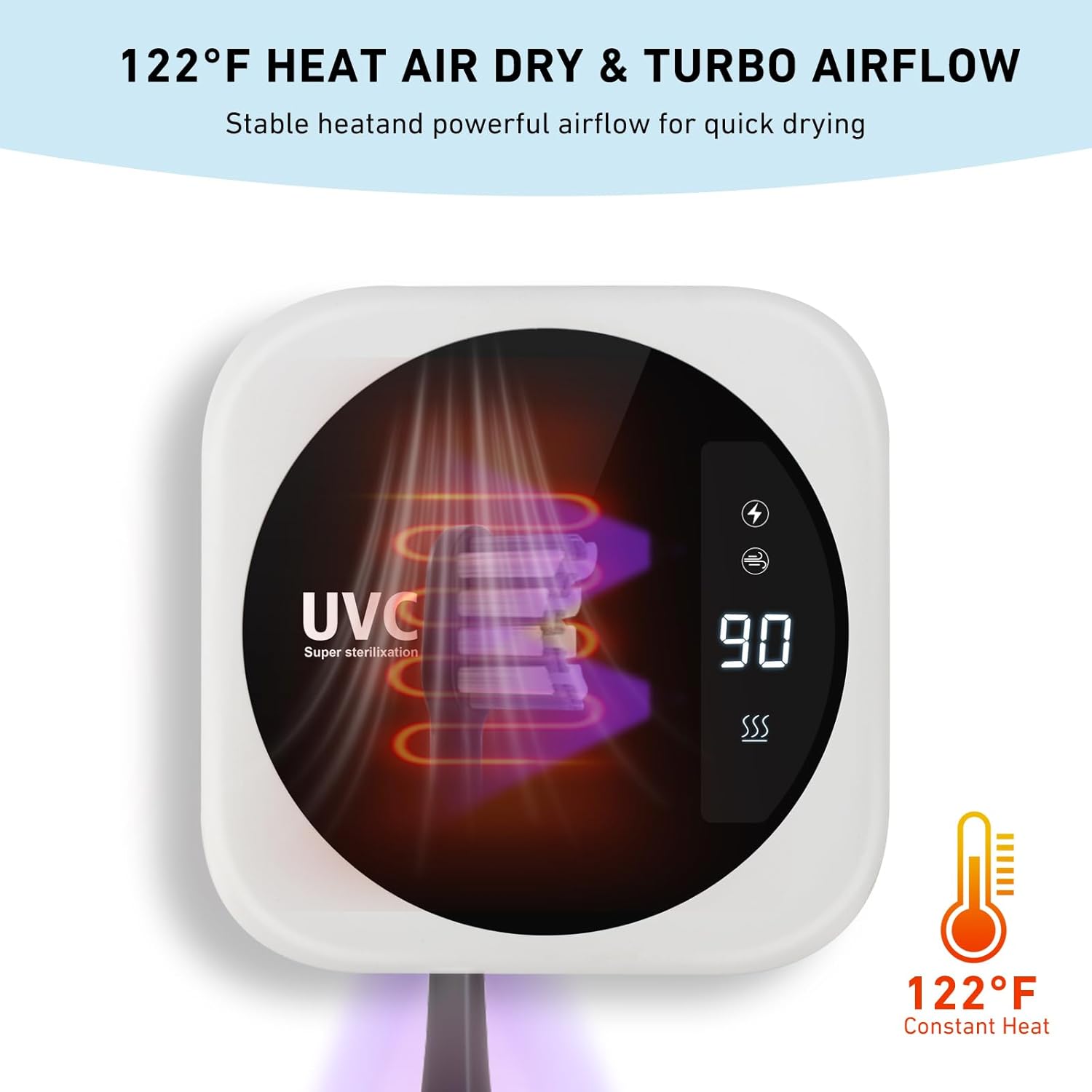 - 【HEAT AIR DRY】- Features 50°C heating and a turbo drying fan to ensure thorough drying of your toothbrush after each use, preventing moisture buildup and harmful substances growth.