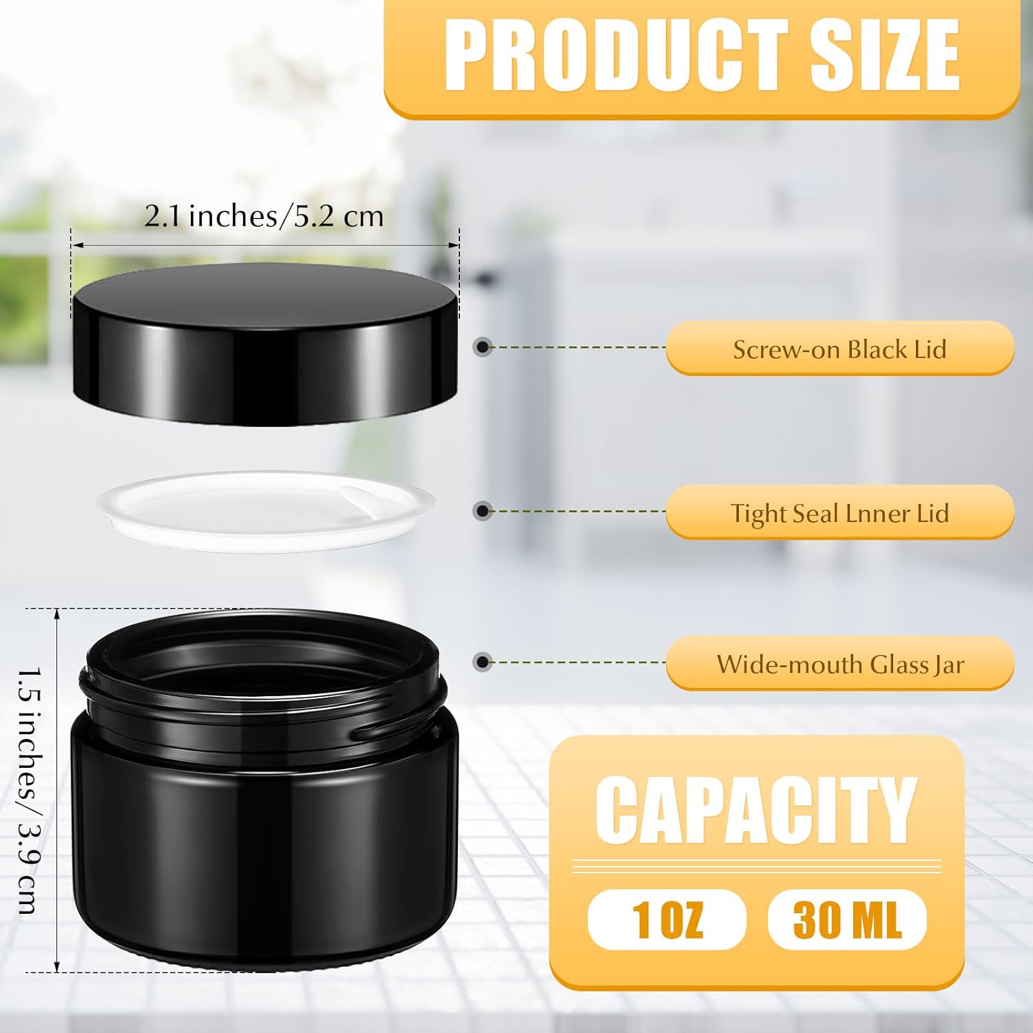 Domensi 100 Pcs 1 oz Glass Jars with Lids Bulk Round Glass Cosmetic Jars Lids 1 oz Small Travel Containers with Inner Liner for Lotions Powders Ointments Sample Cream(Black,Black)
