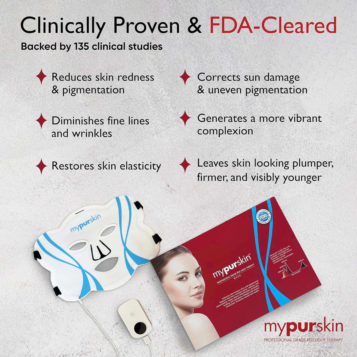 - 𝗖𝗹𝗶𝗻𝗶𝗰𝗮𝗹𝗹𝘆 𝗣𝗿𝗼𝘃𝗲𝗻 𝗥𝗲𝗱 𝗟𝗶𝗴𝗵𝘁 𝗧𝗵𝗲𝗿𝗮𝗽𝘆 𝗮𝘁 𝗛𝗼𝗺𝗲: Mypurskin mask, designed with dermatologists, delivers 53 mW/cm² of powerful light to target wrinkles, boost elasticity, and restore a radiant glow. Experience faster, clinic-level results with 7.2–14.4 J/cm² per session—up to 50x more effective than standard masks. Reveal smoother, younger-looking skin in just minutes a day.