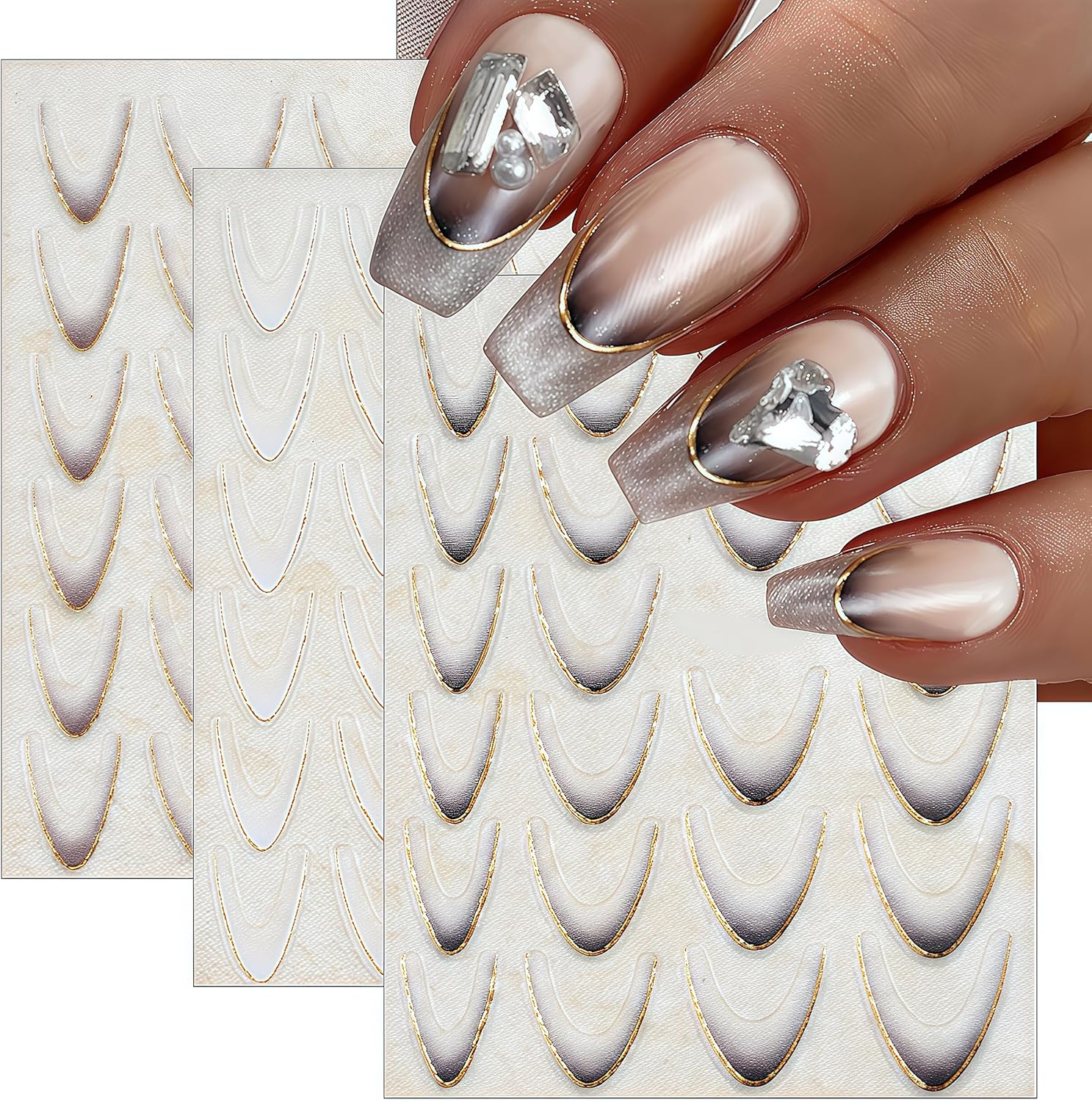- Easy to Use:French tips line nail stickers decal are self-adhesive,completing fashion-cool nail art design in just a few seconds. If you want to keep it for a long time, you need to apply nail polish on the surface for reinforcement