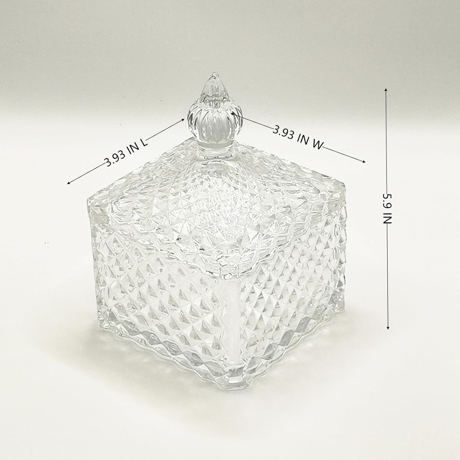 - 【Unique Design】This classic glass jewelry box has delicate and lovely beautiful embossed pattern, which makes you look bright, this powder puff case measures 3.93 inches L x 3.93 inches W x 5.9 inches H, designed for vanity table storage and decoration