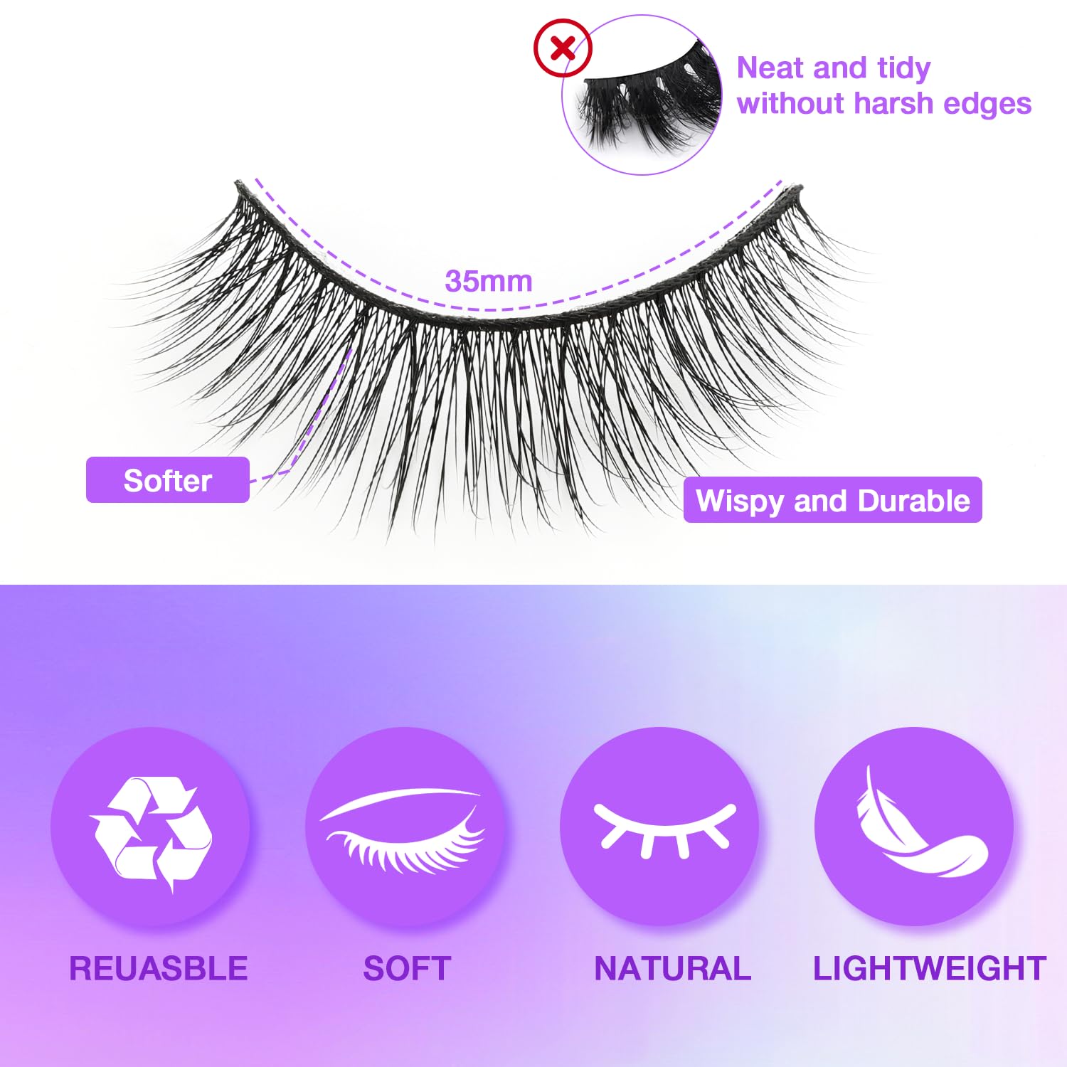 - All-Day Waterproof Warrior: Sweat-proof, rain-ready fake eyelashes that stay flawless for 12+ hours! Natural-looking strip lashes with flexible band won’t lift corners. Perfect for weddings, workouts, or humid days – reusable wispy magic!