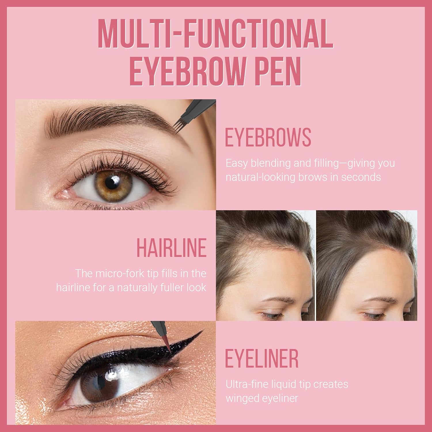 - Multi-Function: Perfect for Beginner and Pros; The ultra-fine liquid tip delivers razor-sharp winged liner in one stroke, while the microblading eyebrow pen fills sparse brows or even your hairline for natural-looking fullness