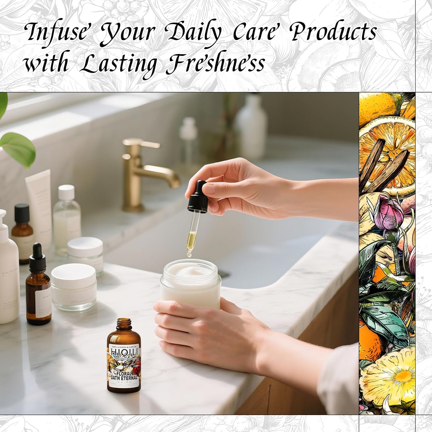 HIQILI Floral Oath Eternal Fragrance Oil, Jasmine & Peach Scents, Perfect for Soap & Candle Making, Essential Oil Diffusers, Skin and Body Scenting - 1 Fl Oz