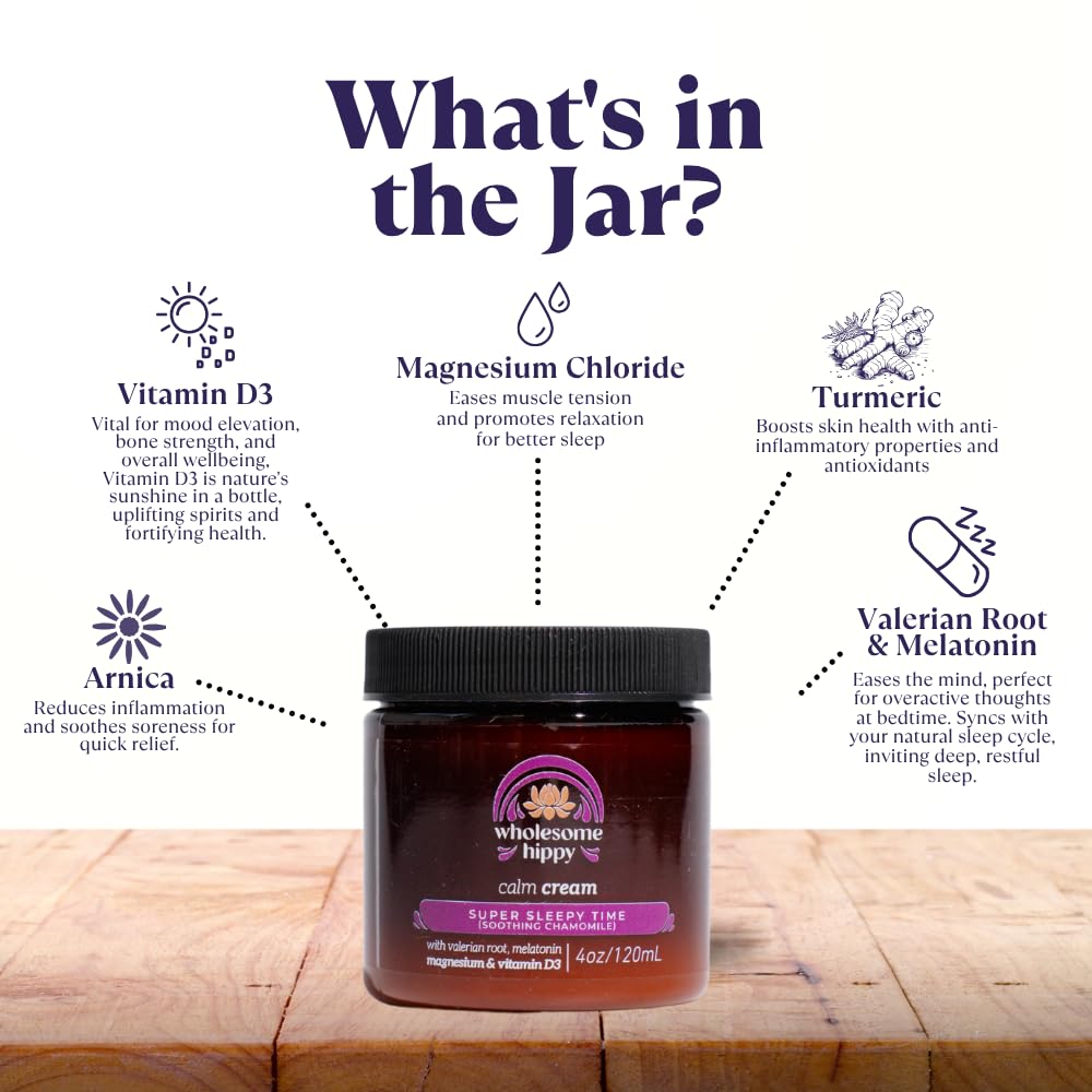 - Wholesome Hippy Super Sleepytime Calm Cream – Nighttime Body Butter with Magnesium, Melatonin, Valerian & Chamomile – Soothing Vegan Moisturizer for Bedtime Routine – 4oz