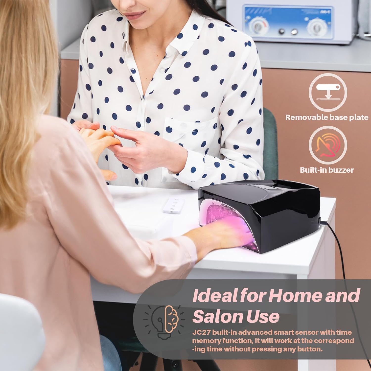 - 【COOLING FAN & KEY SOUND】: This nail lamp features a built-in cooling fan that effectively protects the LED chips and thus extends its lifespan.Key sound to avoid misoperation.