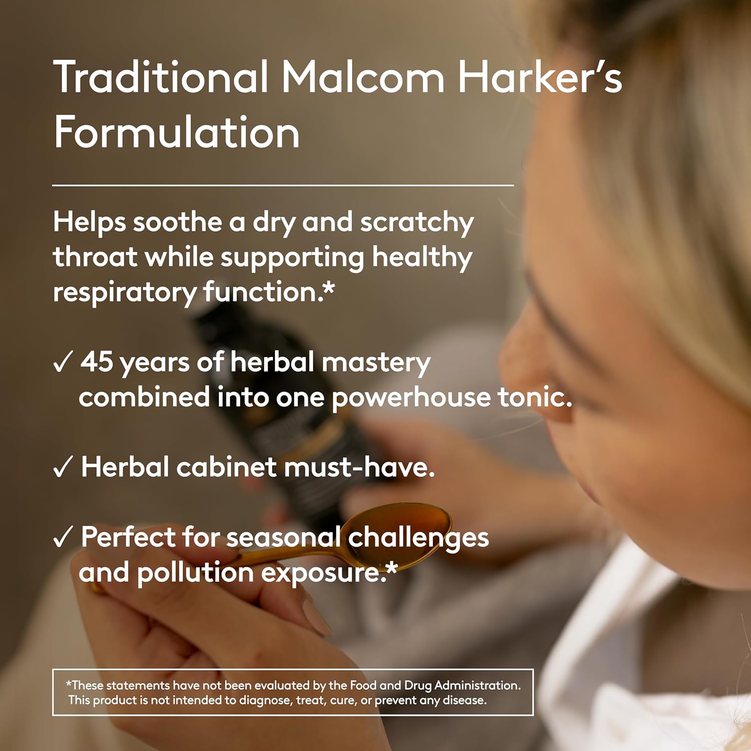 - Unique Formulation – Malcolm Harker’s original, time-tested formulation combines botanicals traditionally used to support lung and bronchial wellness including, elecampane, ginger, white horehound, cayenne pepper & licorice.